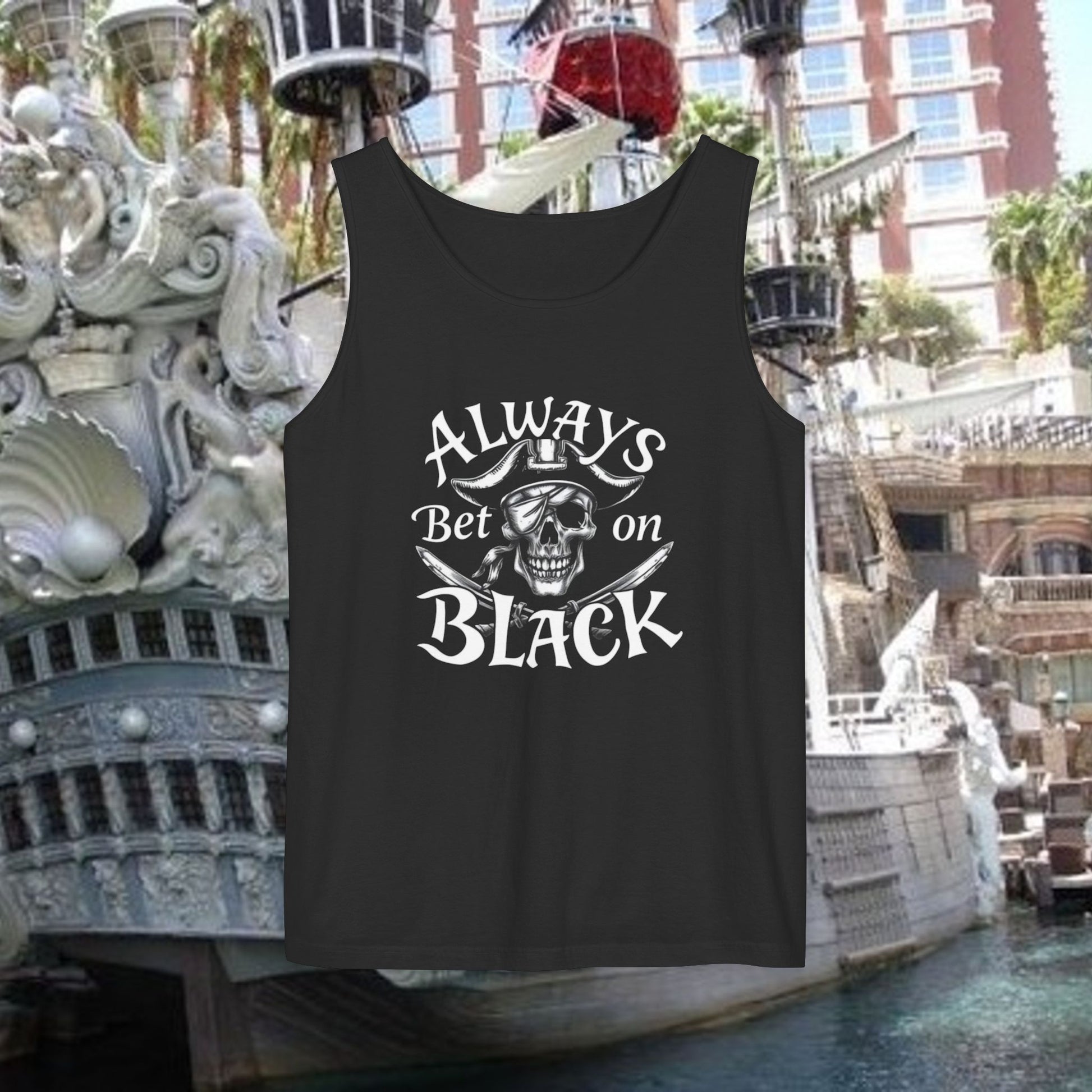 Always Bet on Black Tank Top, Unisex Tank, Casual Summer Top, Gift for Gamblers, Pirate-Themed Apparel, Party Wear, Beachwear