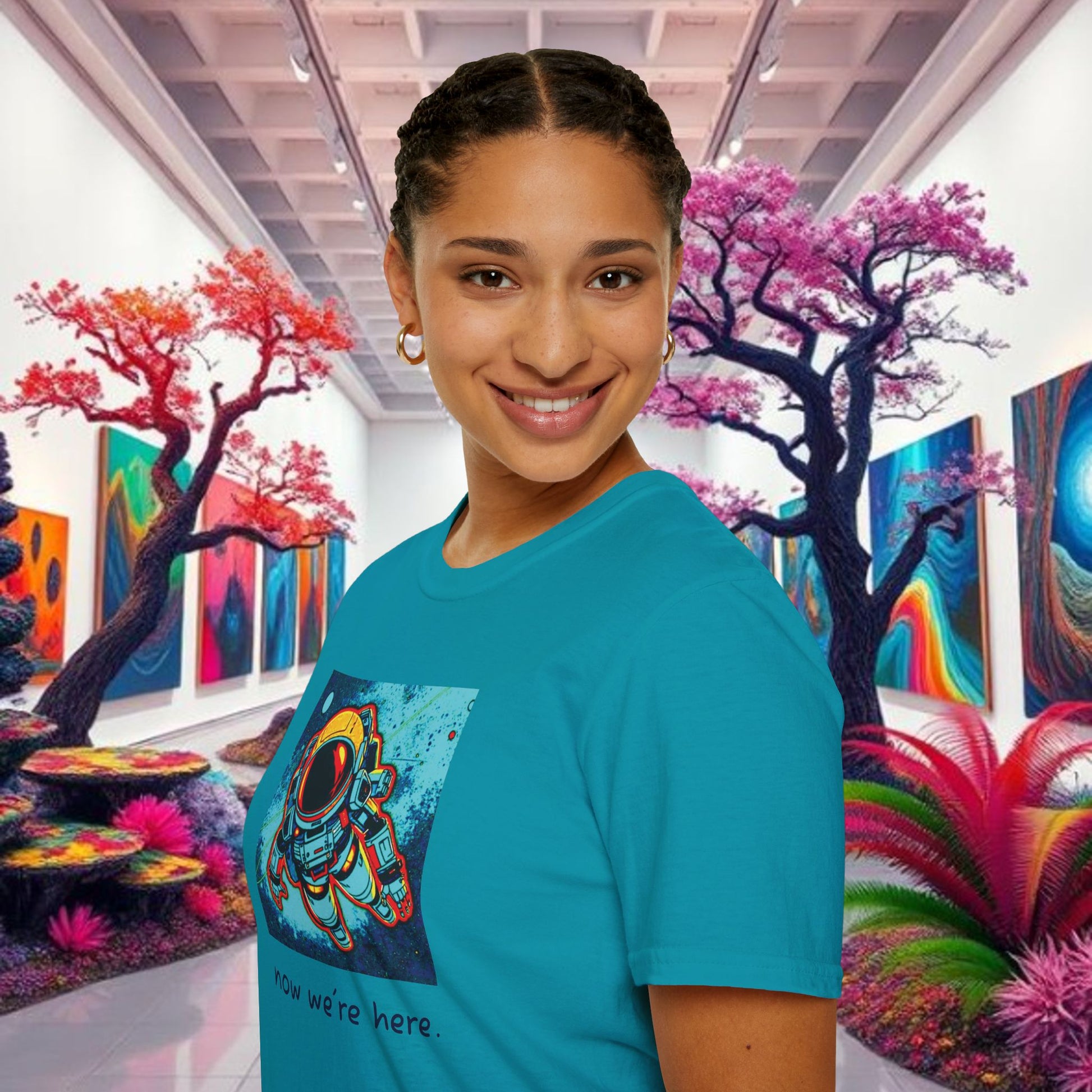 Experience comfort and style all year round with this unisex softstyle t-shirt. Made from specially spun fibers, it offers a smooth feel that is perfect for everyday wear. The vibrant design captures an adventurous spirit, making it ideal for dreamers and sci-fi enthusiasts. Whether you're out with friends or lounging at home, this t-shirt strikes the right balance between casual and chic. Perfect for occasions like birthdays, casual gatherings, or even as a unique gift for holidays like Christmas or Father's Day, it’s a versatile addition to any wardrobe.