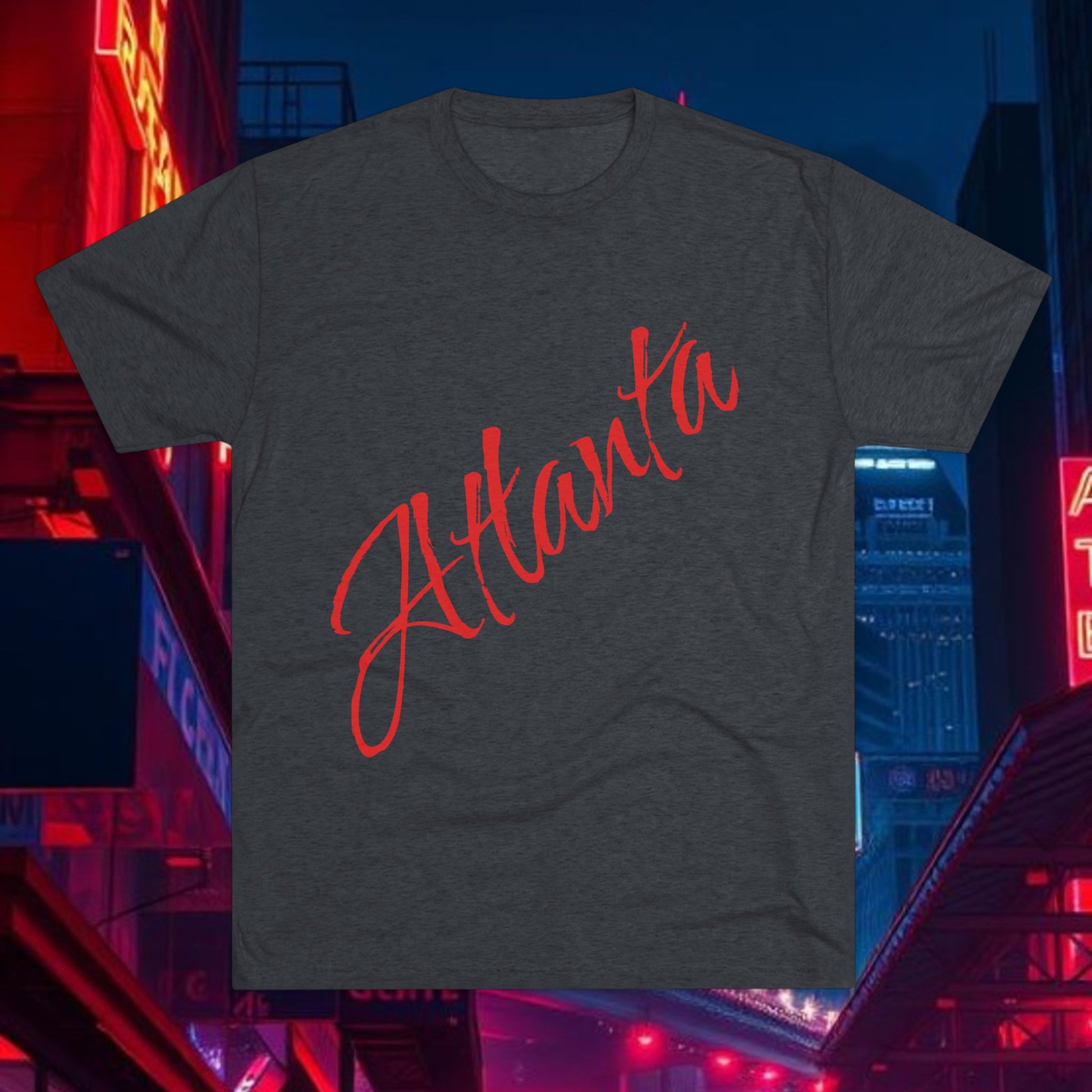 Atlanta Script Tee — Red Diagonal City Name T-Shirt, Tri-Blend Super Soft Style T-Shirt, Perfect for Gameday or a Night Out