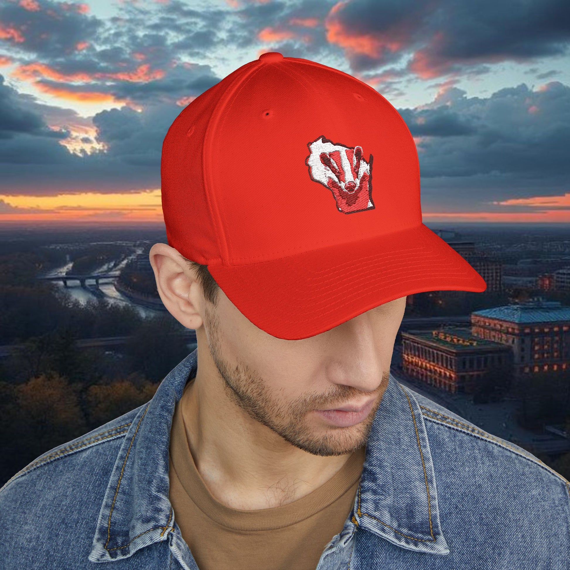 Badger Design Hat - Structured Embroidered Hat, Sports Hat, College Gear, Gift for Sports Fans, USA Map Cap