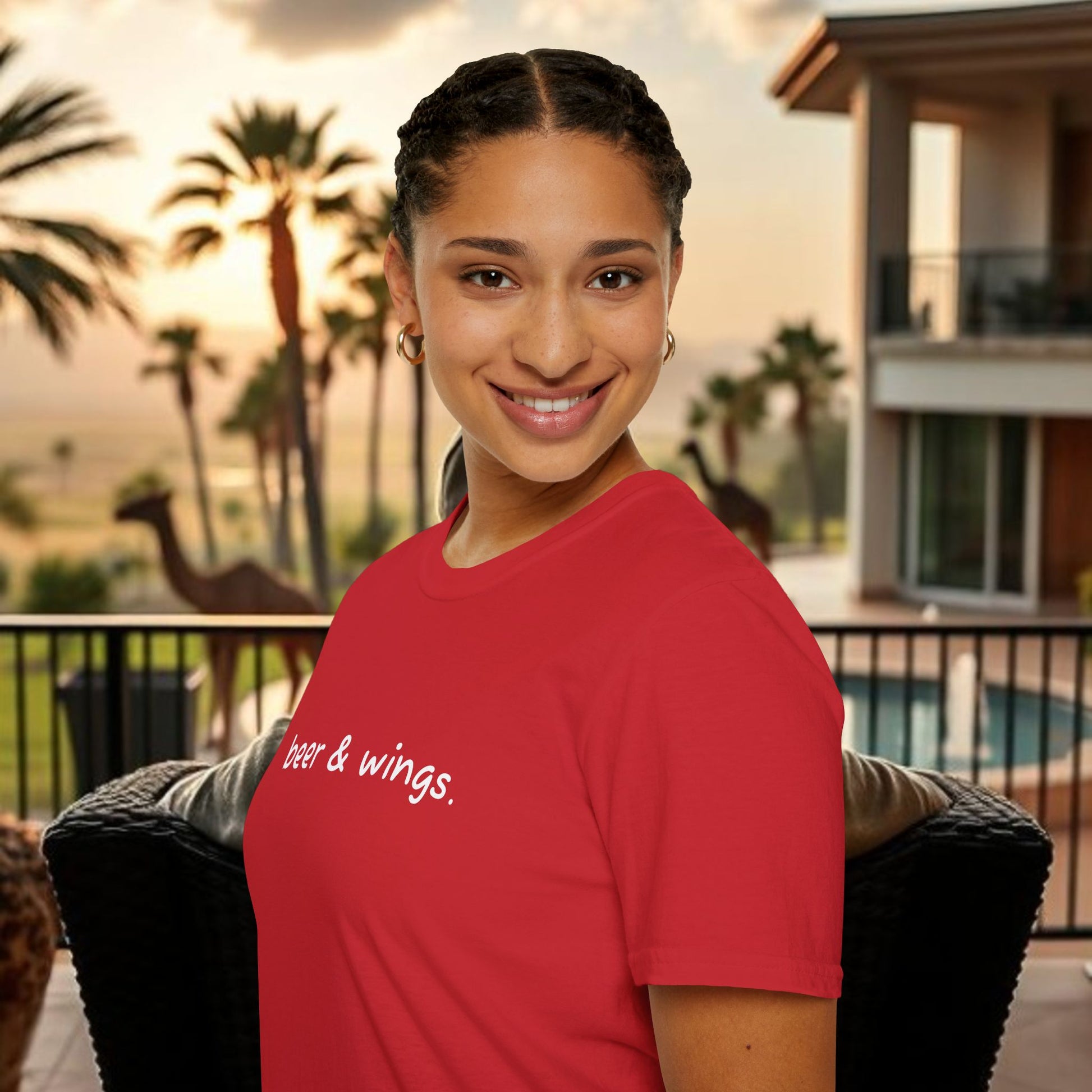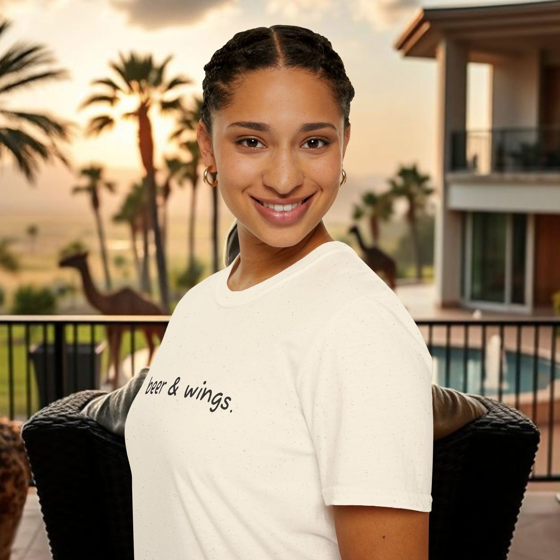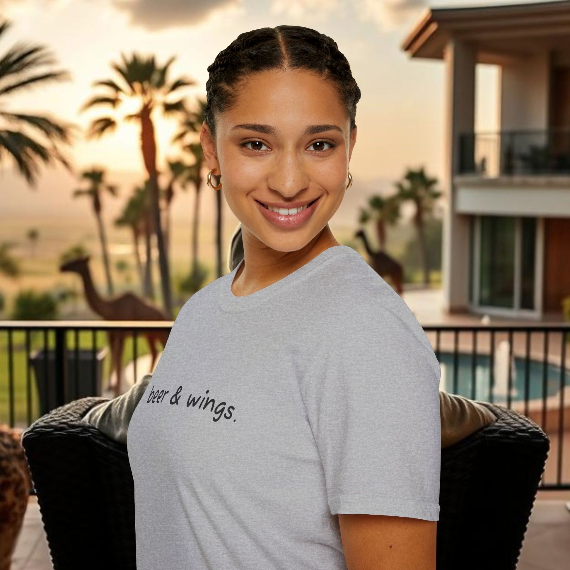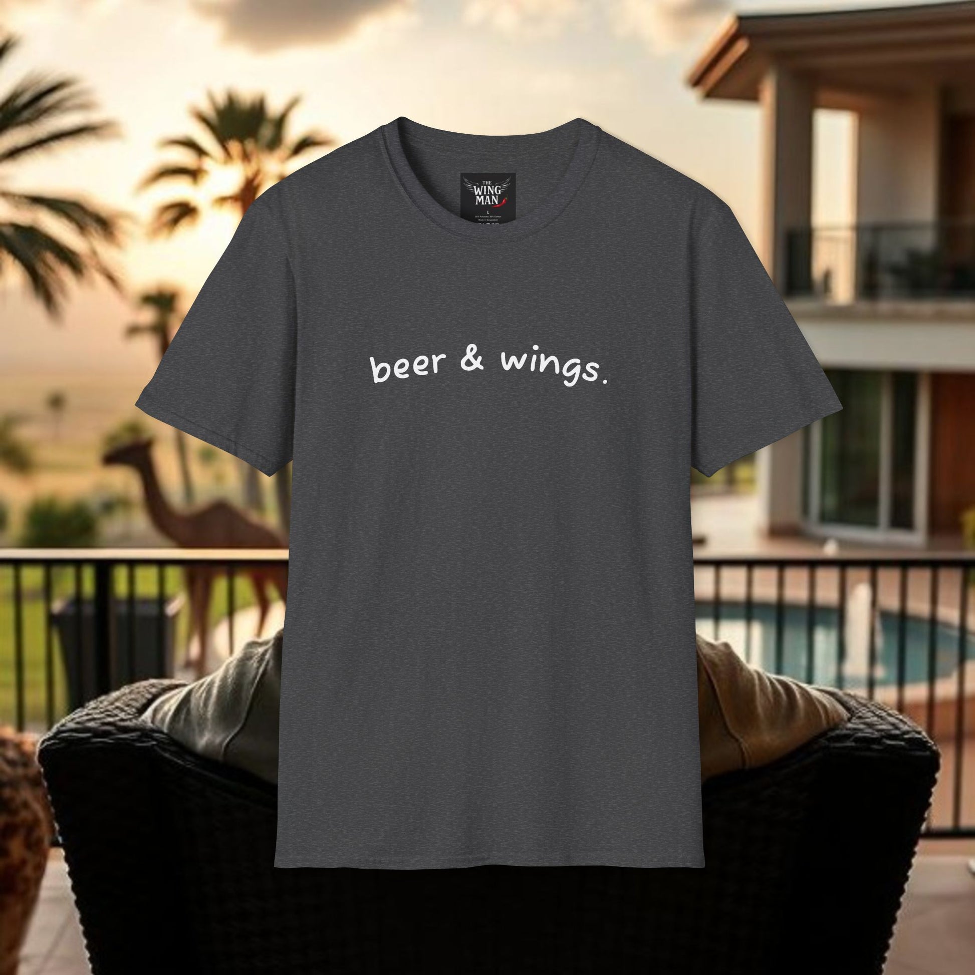 Beer & Wings Unisex Softstyle T-Shirt, Casual Gift for BBQ Lovers, Fun Drink Shirt, Summer Party Apparel, Unique Gift for Foodies