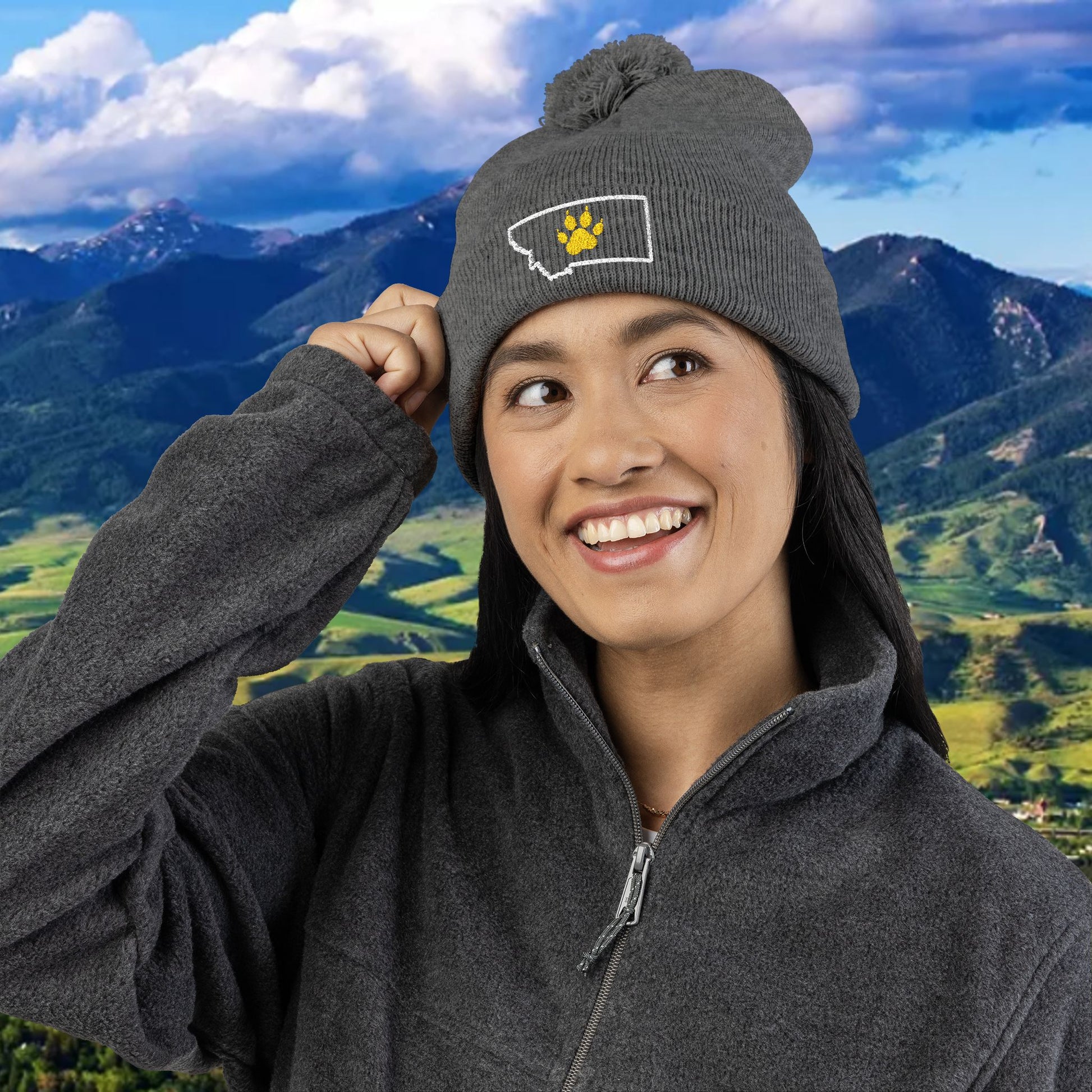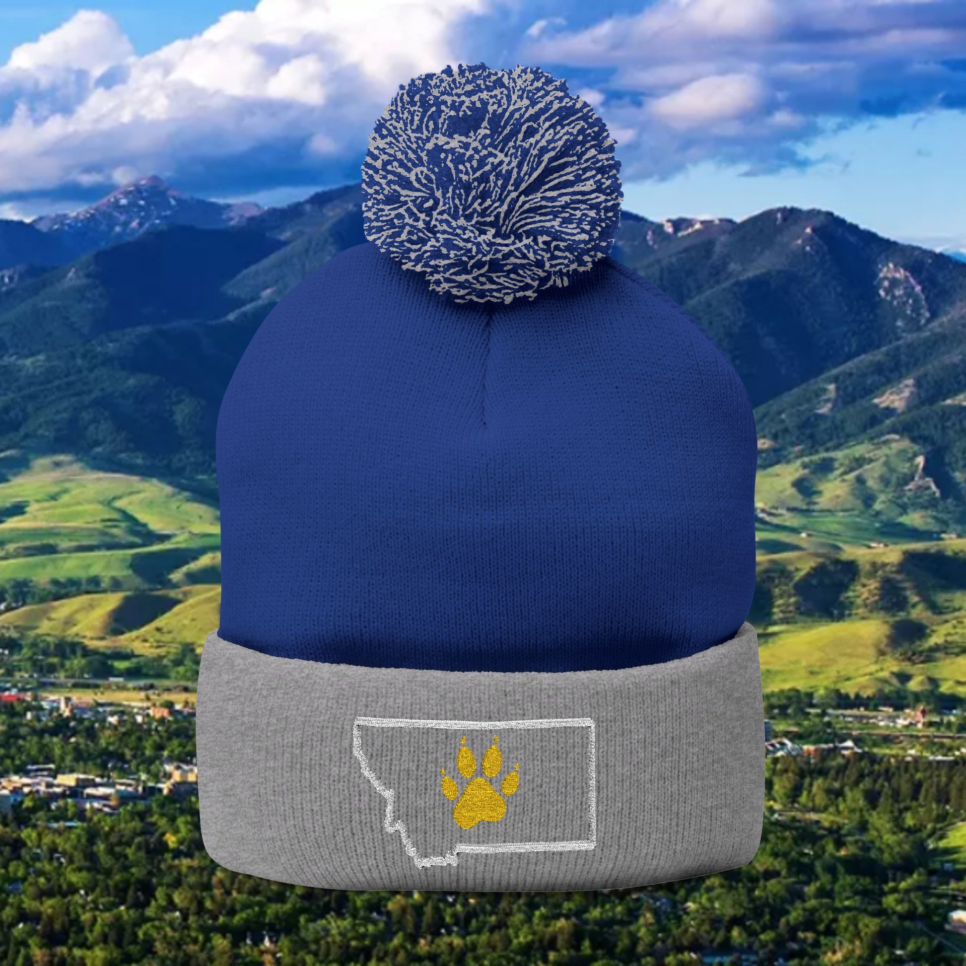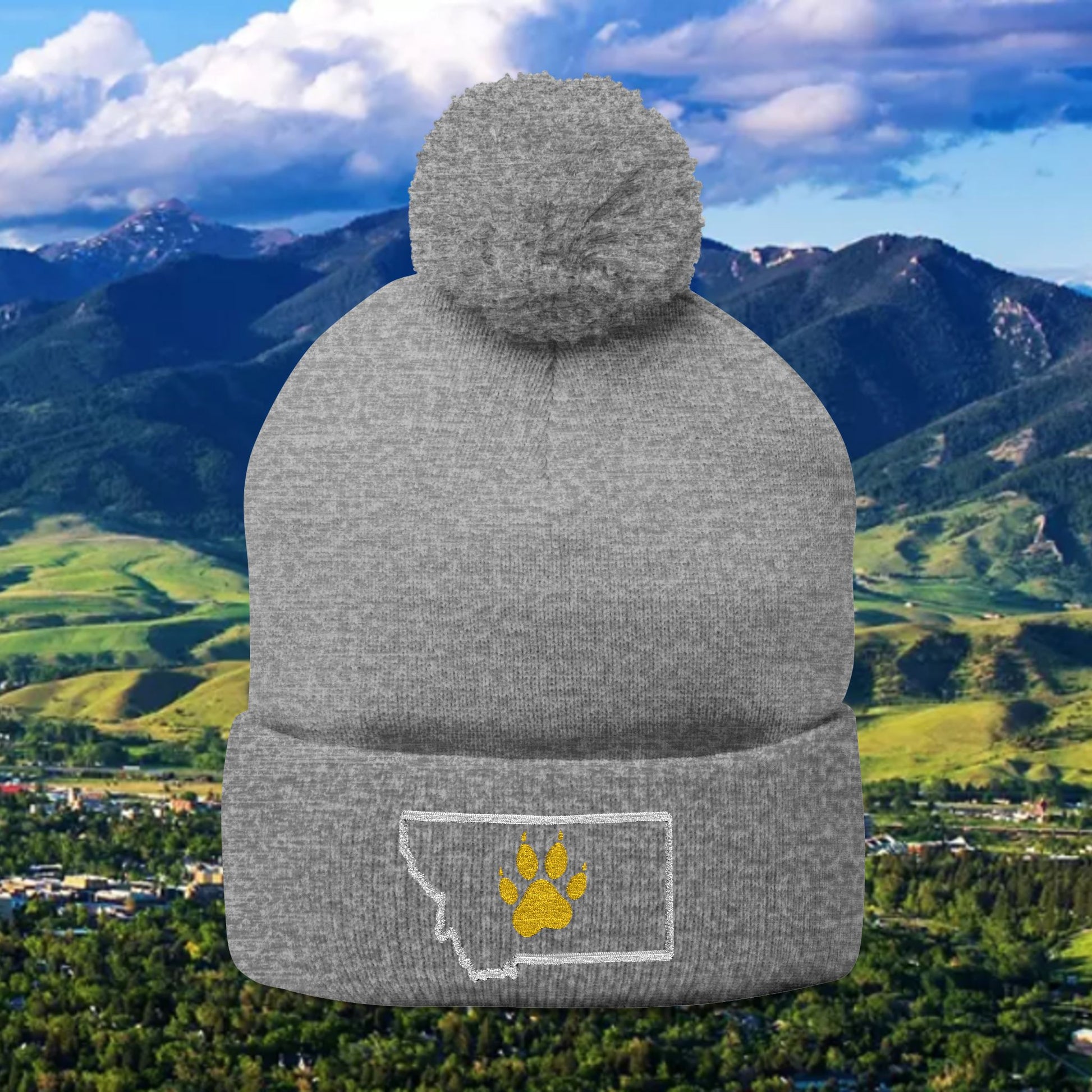 Bobcat Paw Print Pom-Pom Knit Cap, Warm Winter Beanie, Cat Fan Gift, Cozy Fashion Accessory, Great for Cold Games