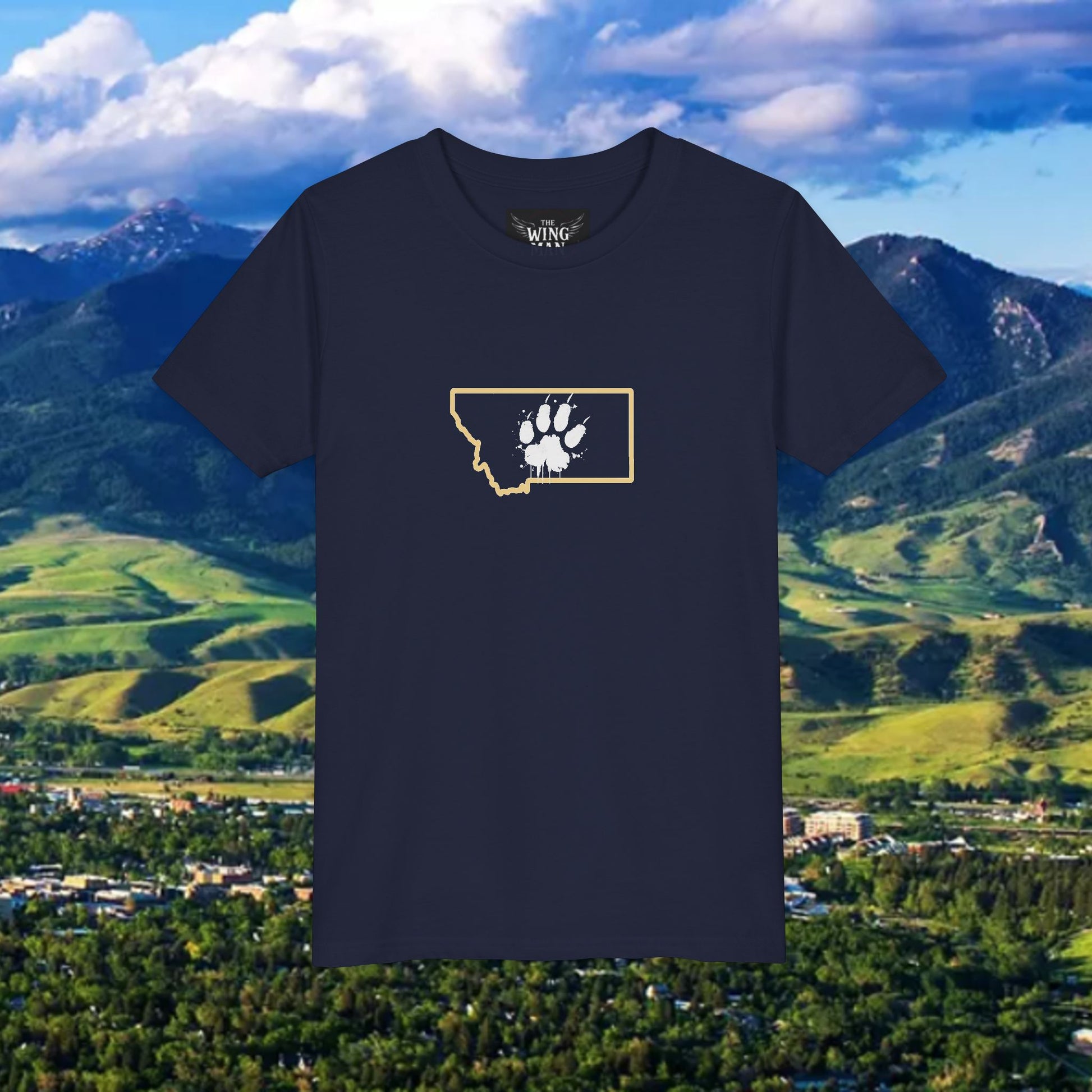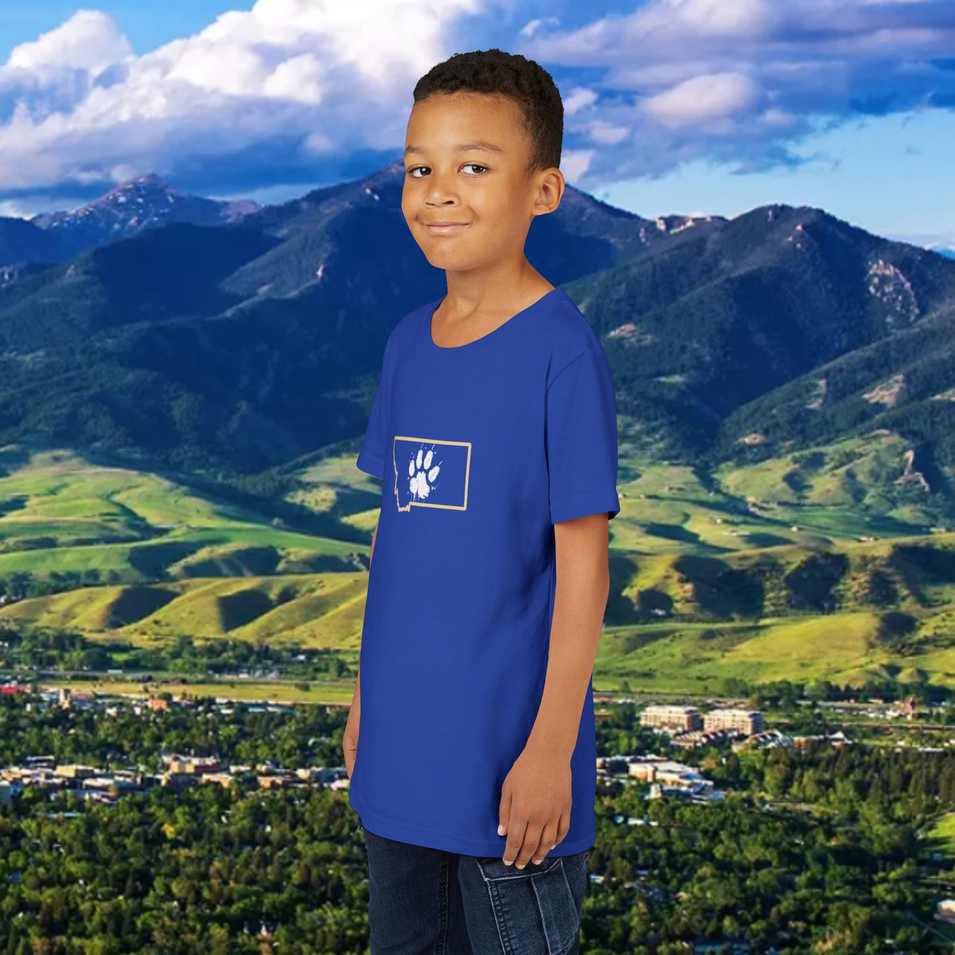 Bobcat Paw Print Youth Tee, Kids Animal Lover Shirt, State Pride T-Shirt, Perfect Gift for Birthdays, Bobcat Apparel