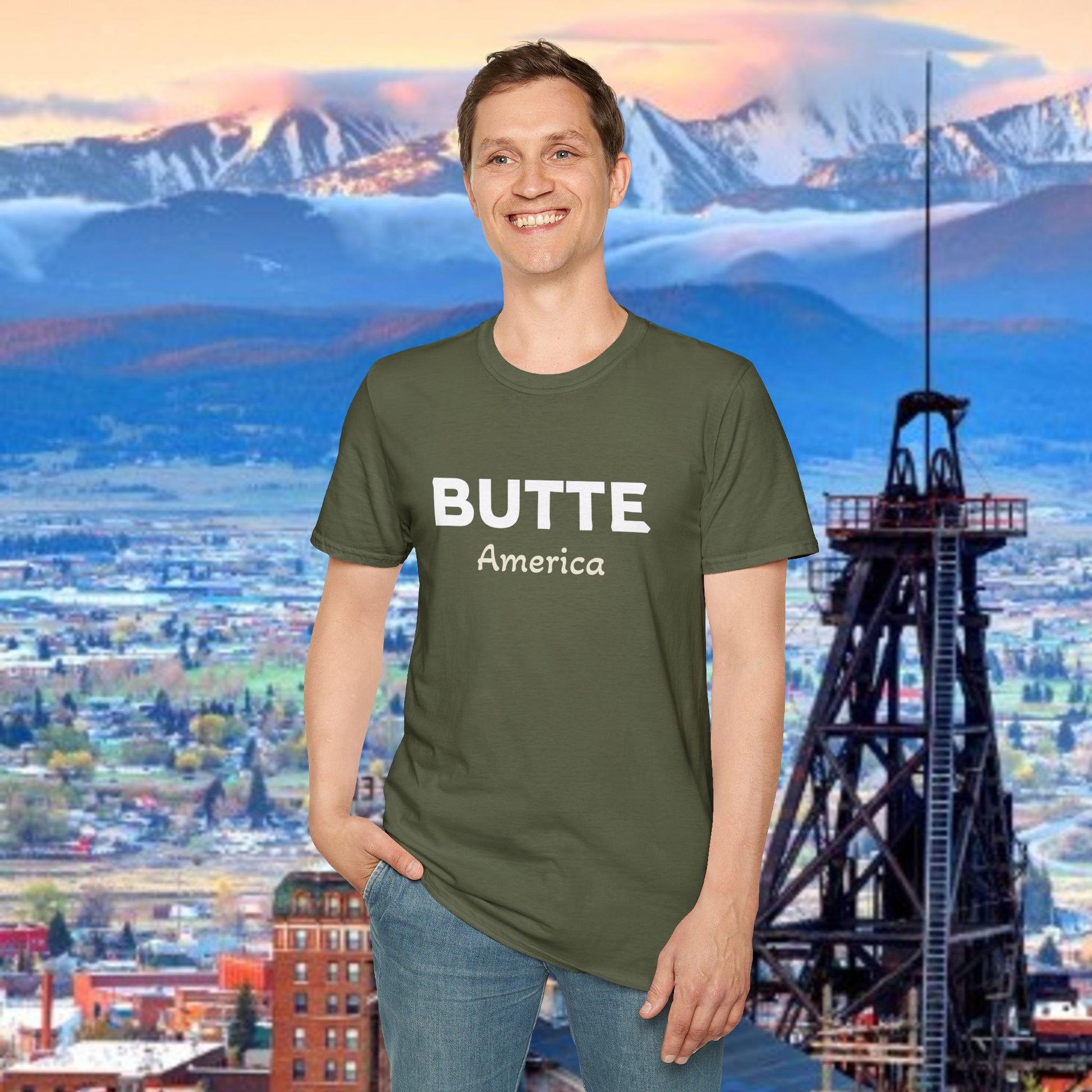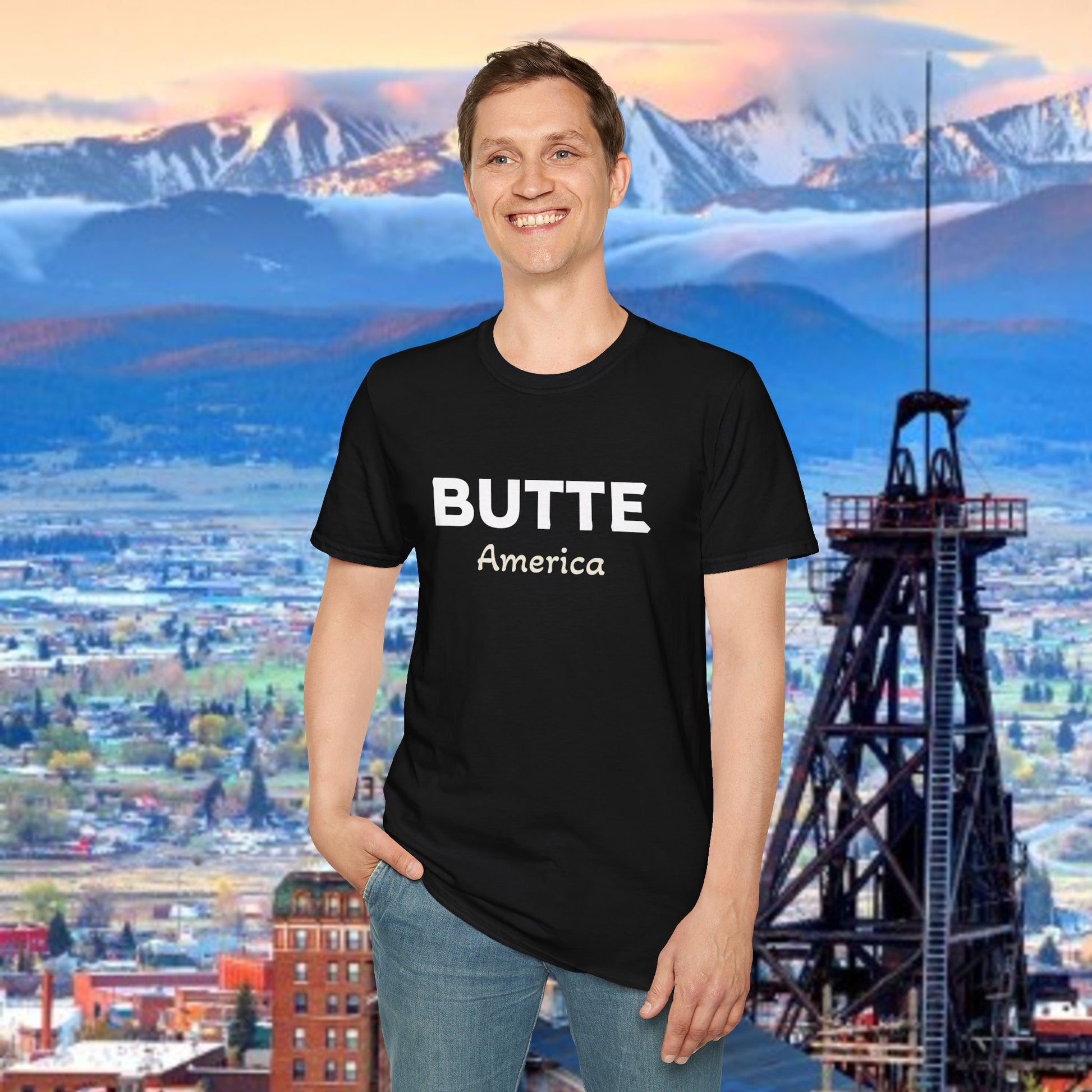 Butte, America Unisex Softstyle T-Shirt - Cozy Apparel for Locals, Travel Souvenir, Gift Idea, Casual Wear, Adventure Tee