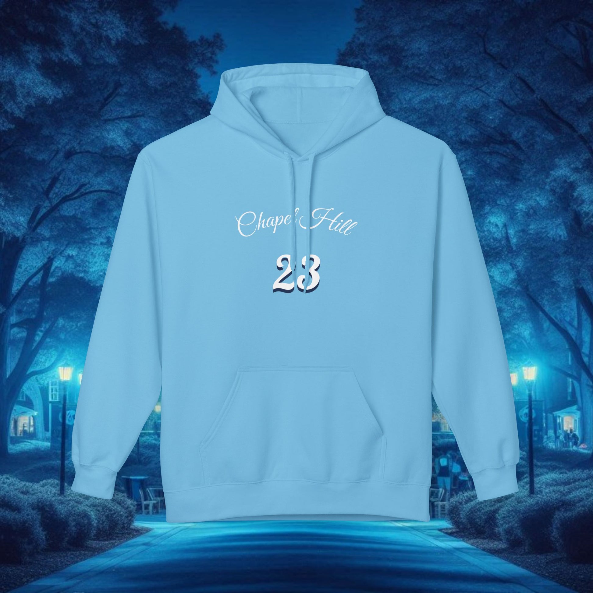 Chapel Hill 23 Unisex Fleece Hoodie, Cozy Sportswear for Fans, Game Day Apparel, Gift for Him/Her, Casual Wear
