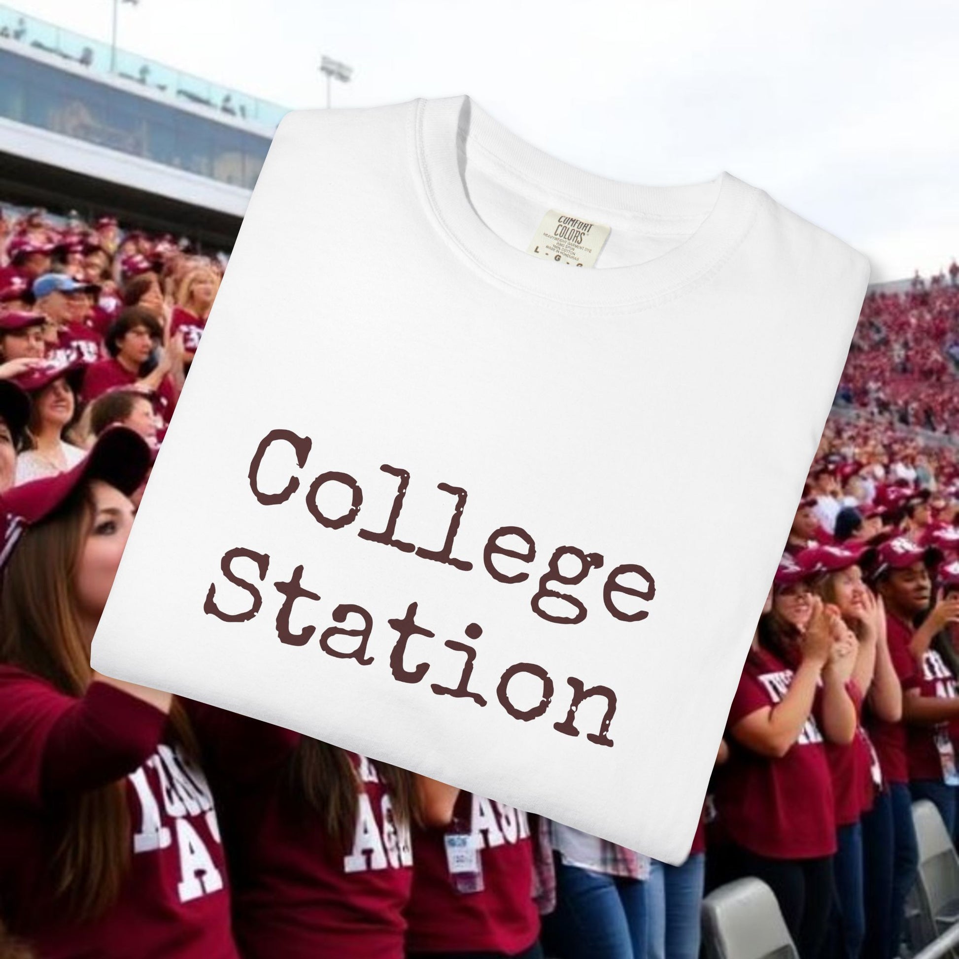 College Station Unisex Garment-Dyed T-Shirt | Casual Wear, College Apparel, Gift for Students, Everyday Style, Trendy Tees
