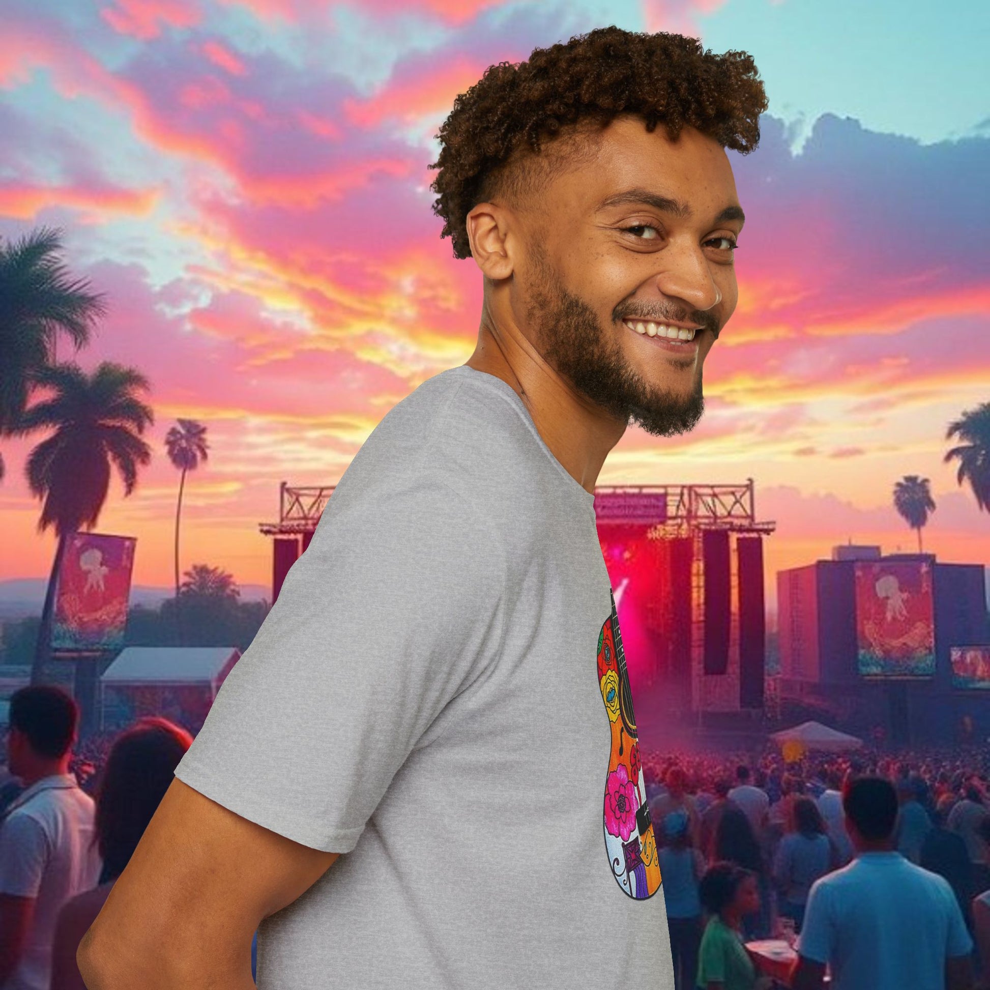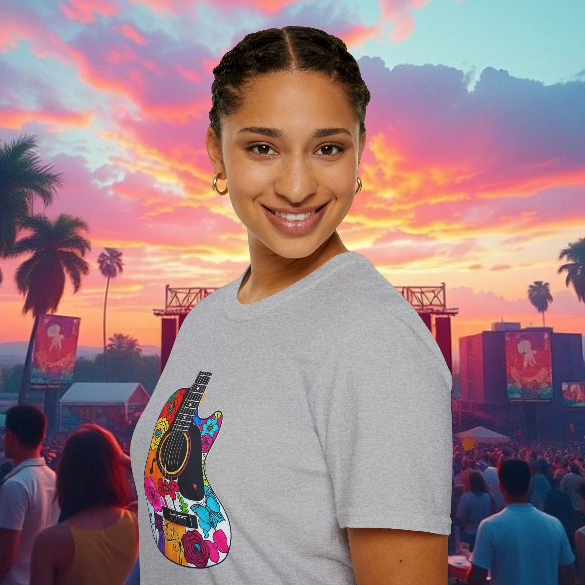 Colorful Acoustic Guitar T-Shirt, Music Lover's Tee, Festival Wear, Gift for Musicians, Vibrant Graphic Shirt
