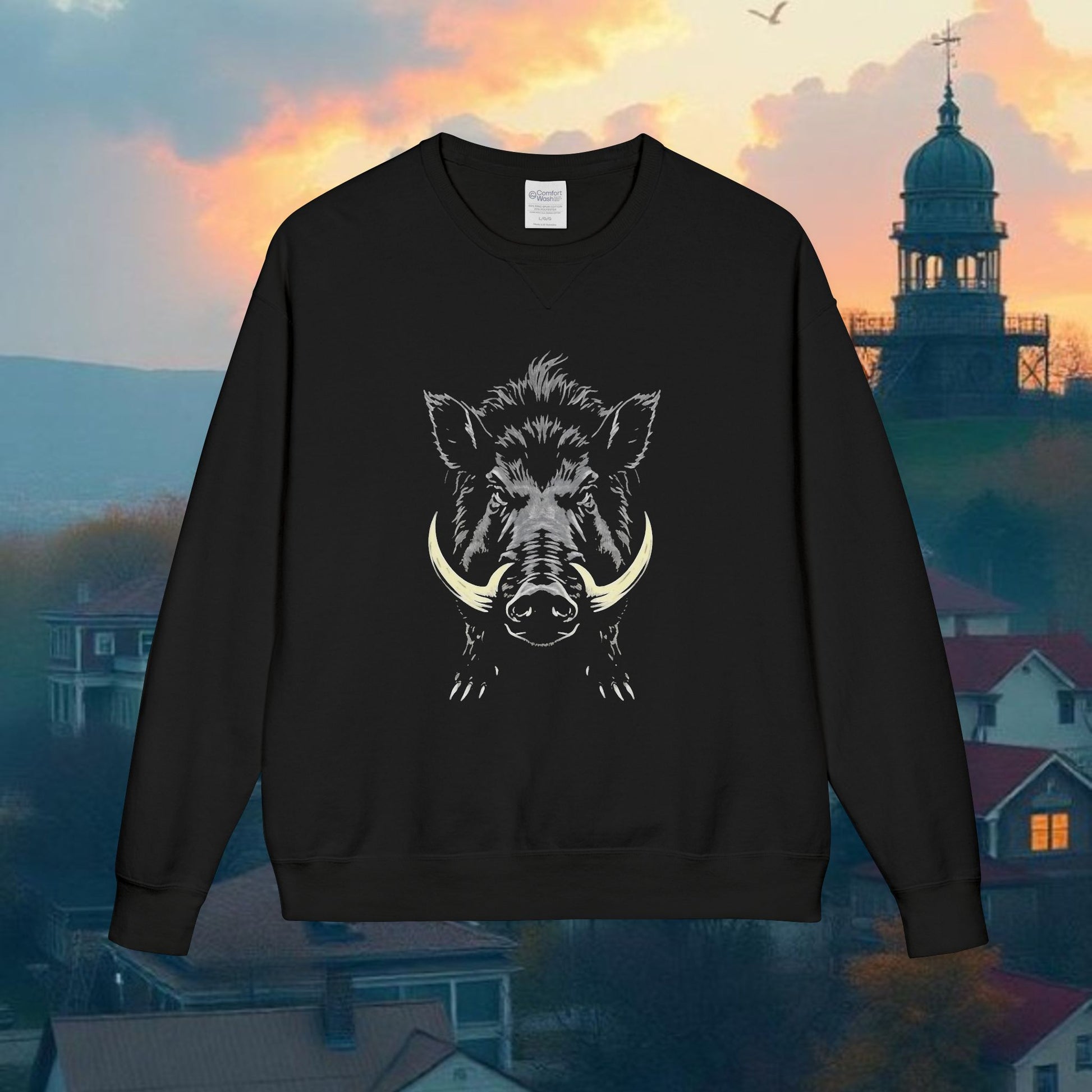 Crewneck Sweatshirt, Wild Boar Graphic, Unisex Cozy Sweatshirt, Vintage Style Crew Neck, Outdoor Adventure Apparel
