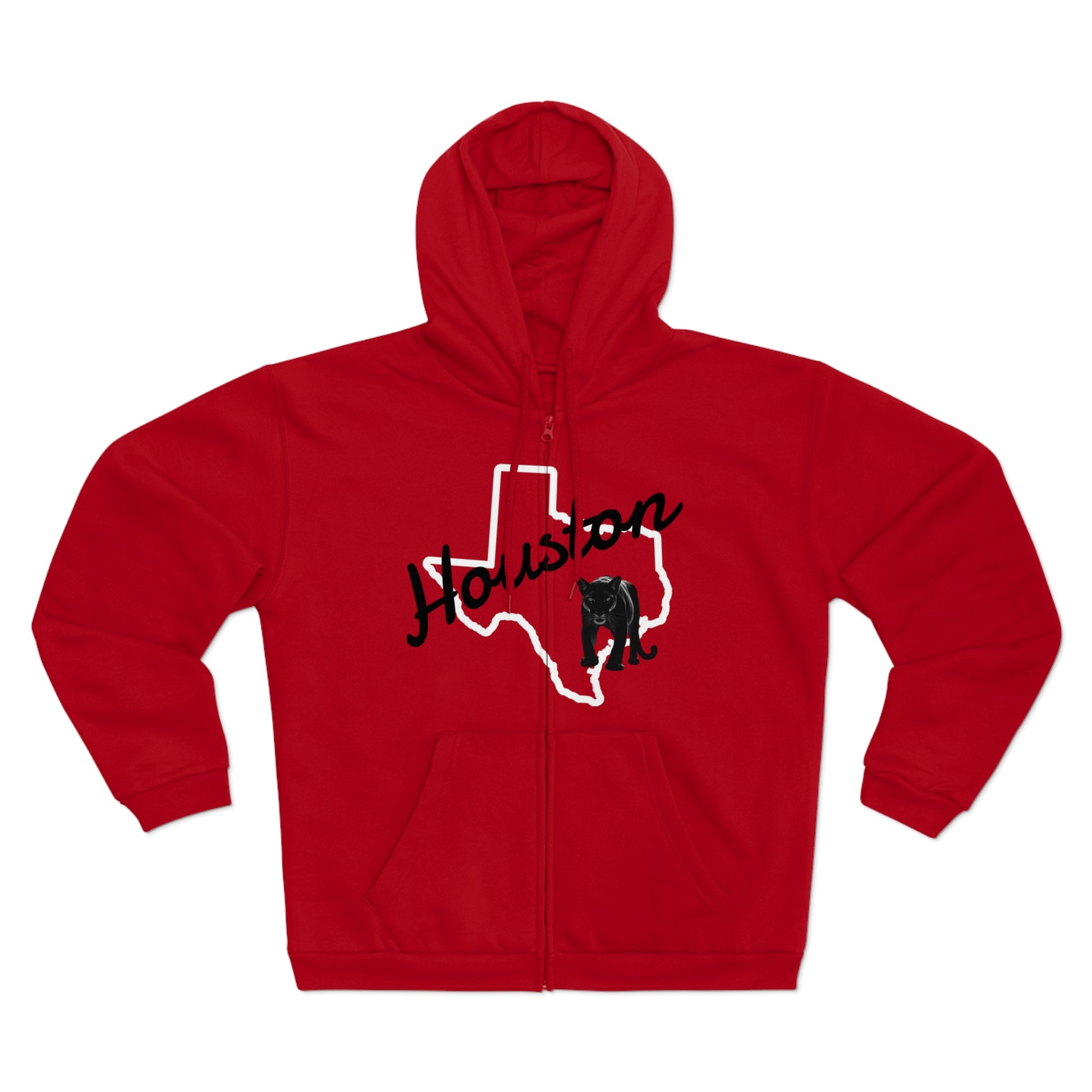 This zip-up hoodie carries hometown pride with a relaxed, lived-in vibe. A hand-lettered “Houston” crosses a bold outline of Texas, while a subtle animal silhouette adds a playful, local touch. Zip it up for cool evenings walking the neighborhood, toss the hood up for a late-night drive, or wear it layered for that comfortable, familiar feel. The brushed fleece interior and roomy kangaroo pocket make it feel like a warm companion on chilly mornings — casual, dependable, and quietly rooted in place.