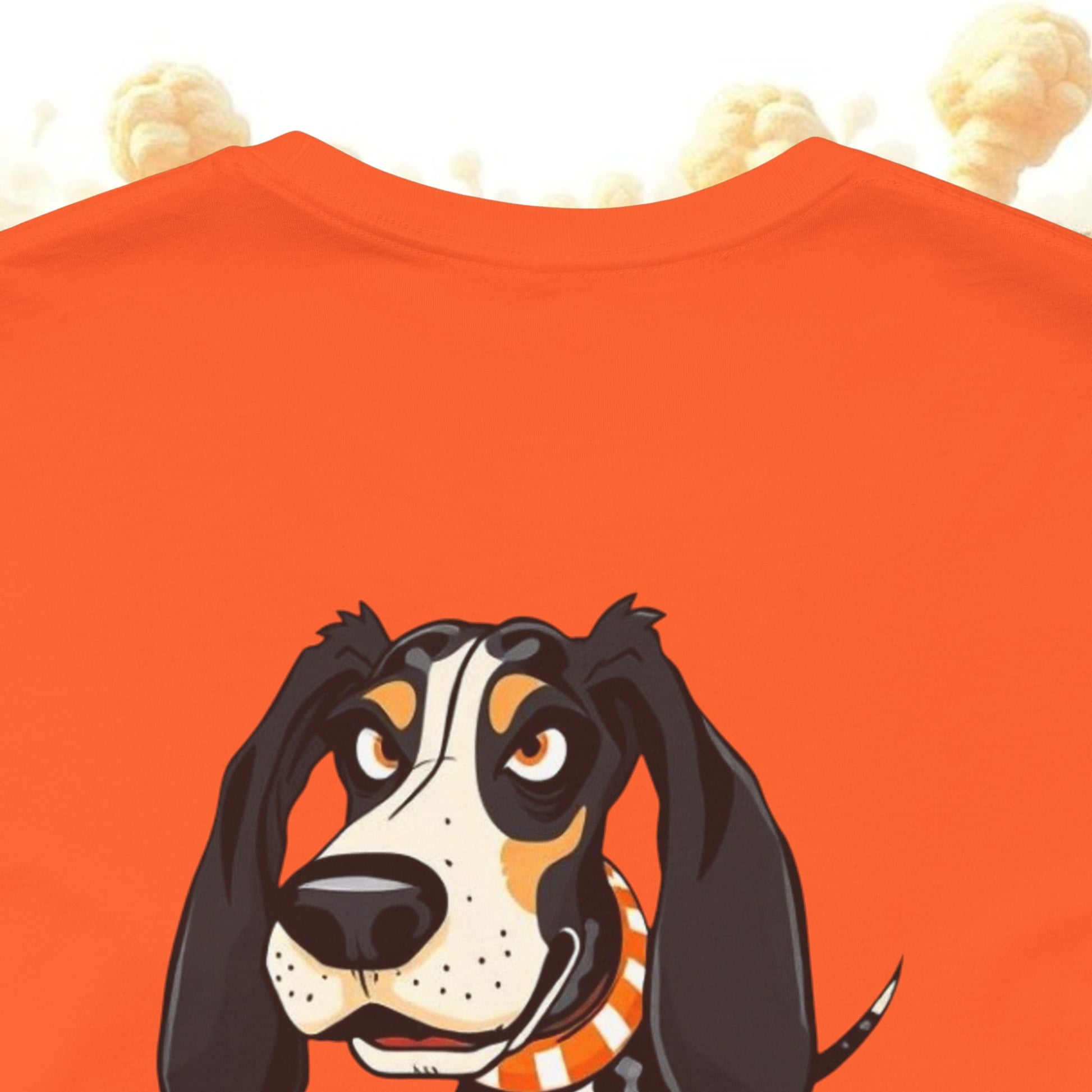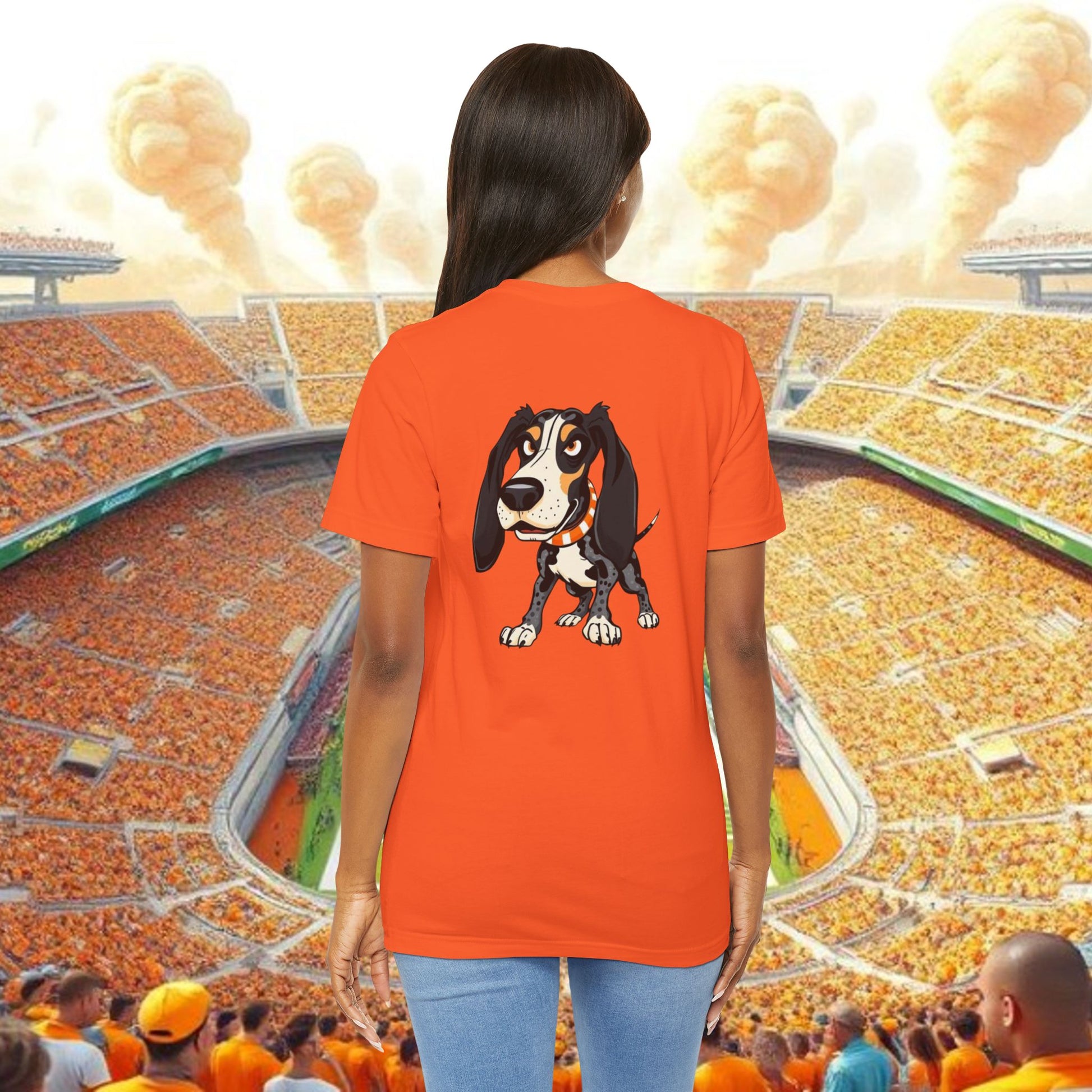 Bright, spirited, and unmistakably fan-forward — this lightweight jersey tee brings stadium energy everywhere you go. The front shows a vertical checker stripe with bold lettering that reads like a rally chant, while the back features a soulful dachshund portrait that adds personality and heart. Wear it to tailgates, watch parties, or casual weekends to signal team pride and playful fandom without saying a word. The breathable Airlume cotton keeps you cool in crowded stands, and the clean crew neckline layers well under jackets or over long sleeves when the evening cools. It’s for fans who cheer loud, laugh often, and never leave their pup off the guest list.