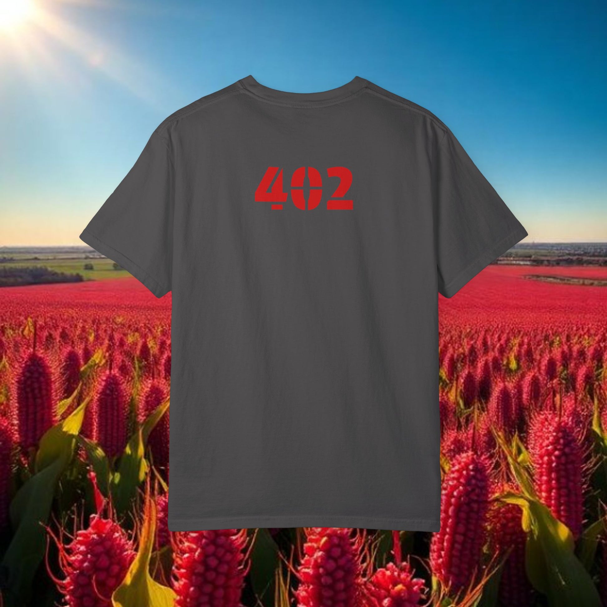 Lincoln Nebraska Area Code T-Shirt — White Tee with Red "Nebraska" & 402 Back Print, Soft-Style T-Shirt