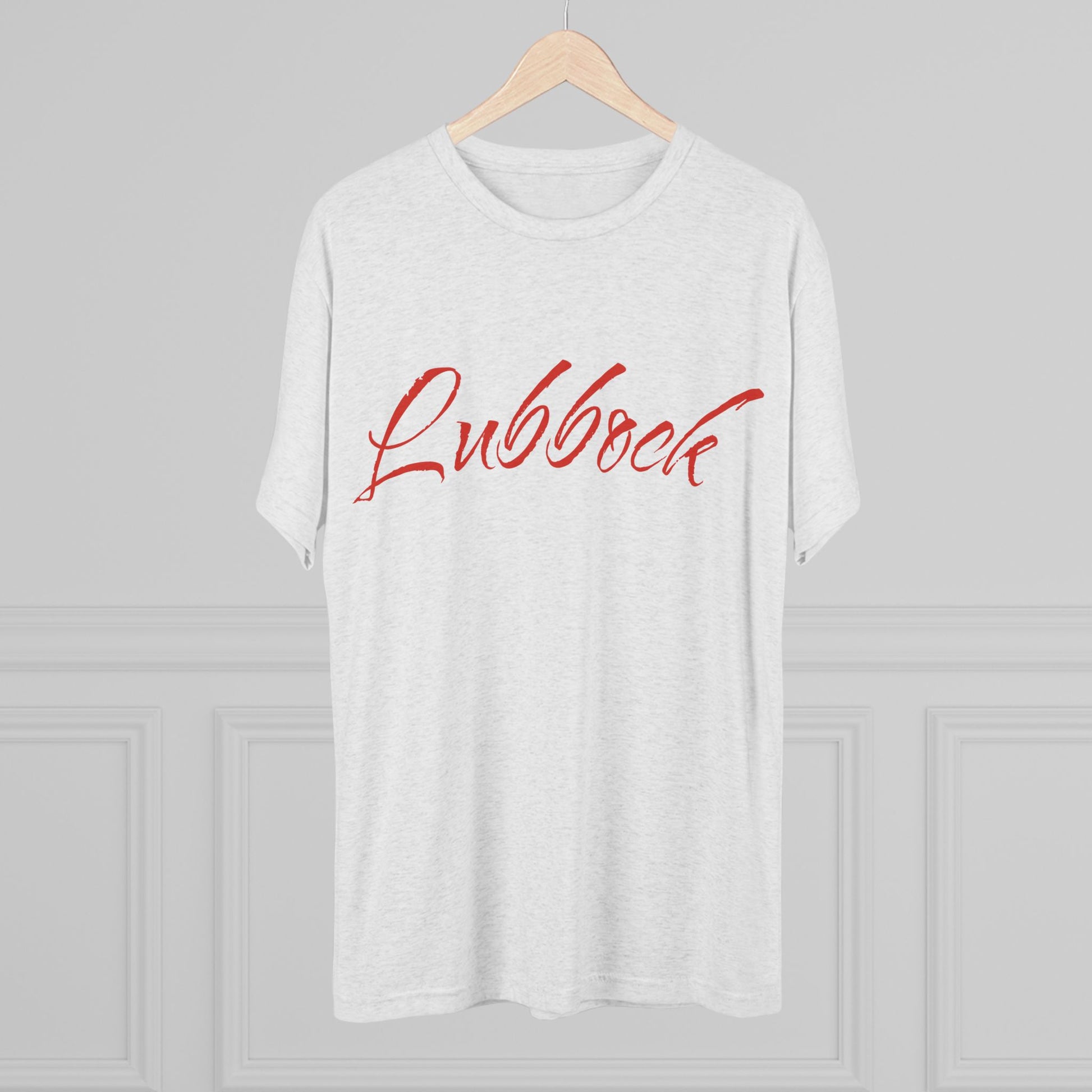 Lubbock Script Tee — Red Cowboy Skull Graphic Crew Shirt, Tri-Blend, Super Soft T-Shirt, Perfect for Gameday