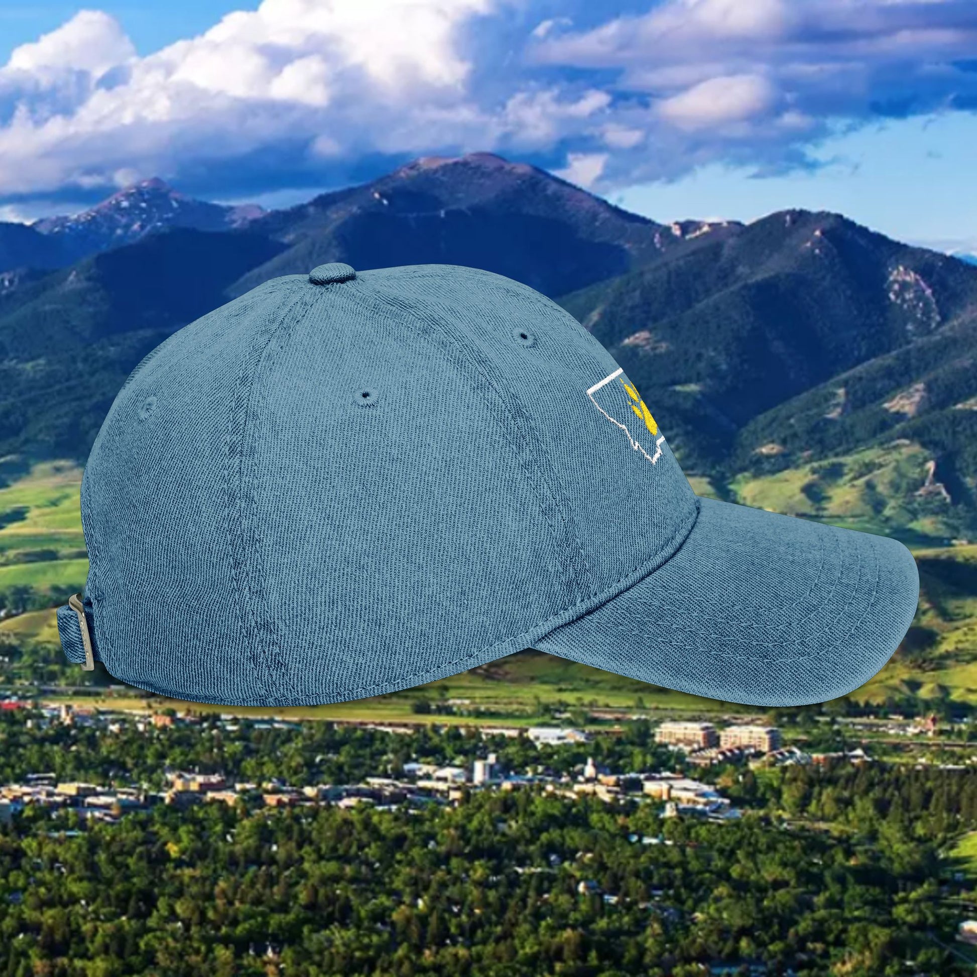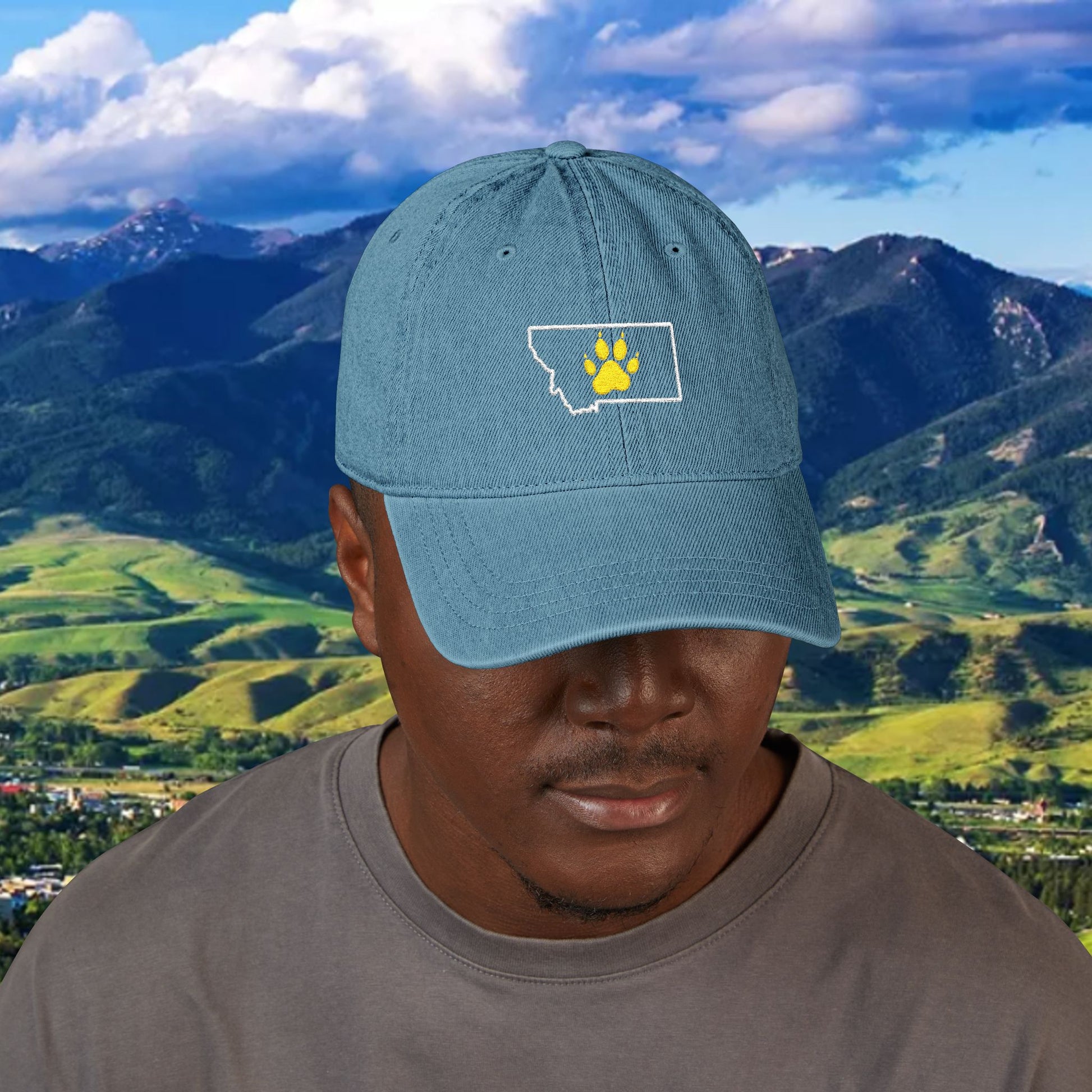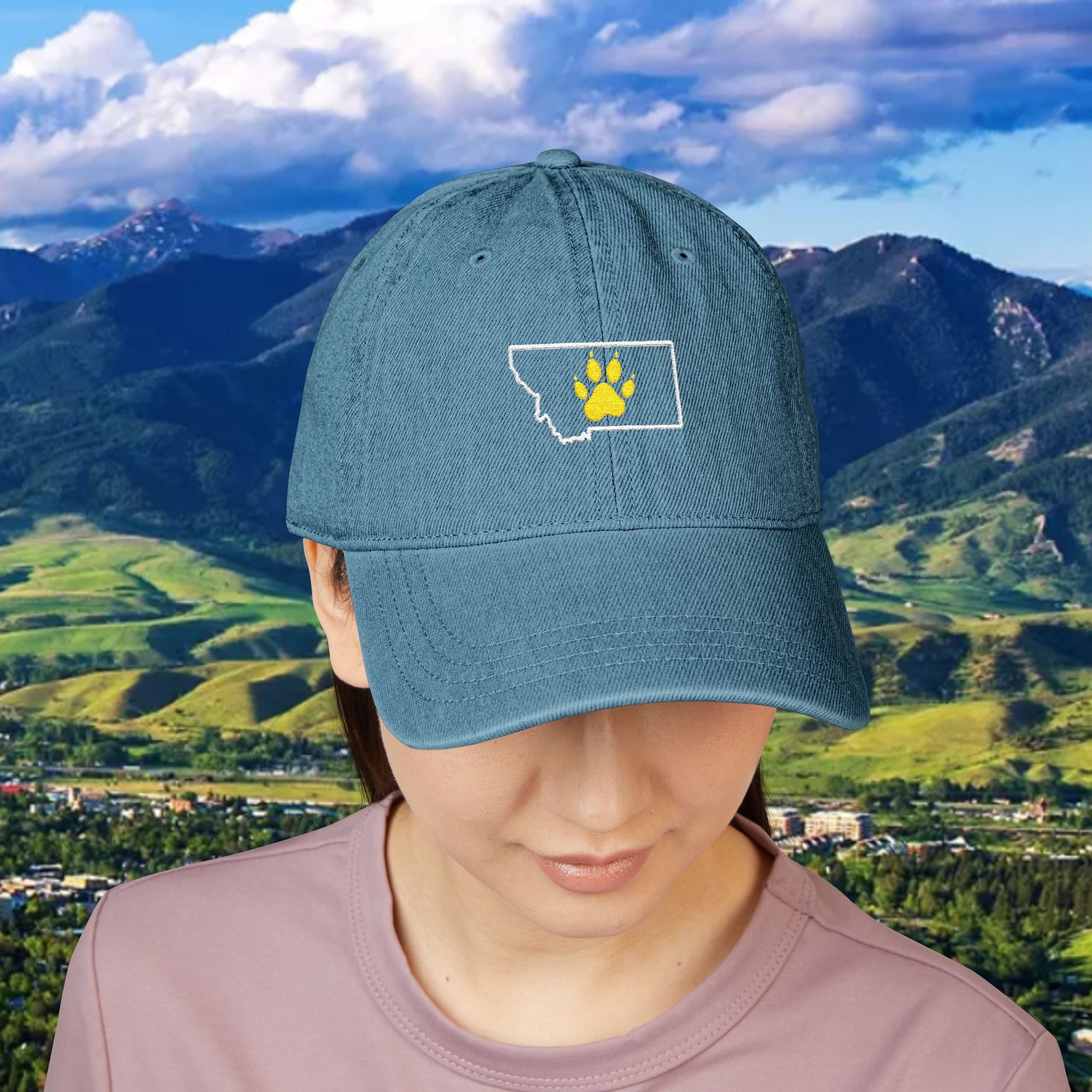 Montana Paw Print Denim Hat, Embroidered Hat, Casual Wear, Gift for Bobcat Fans, Outdoor Adventure Cap, Summer Accessories