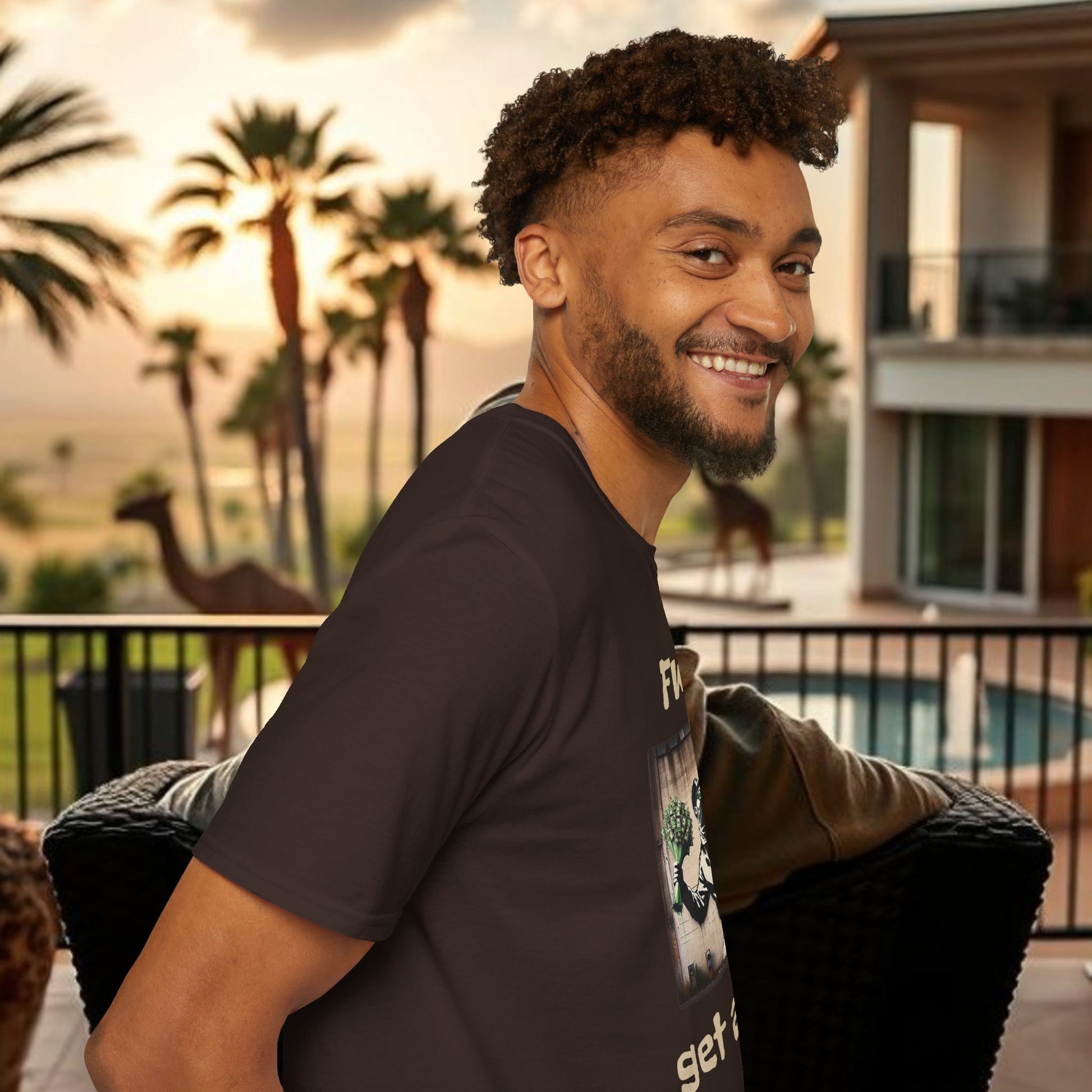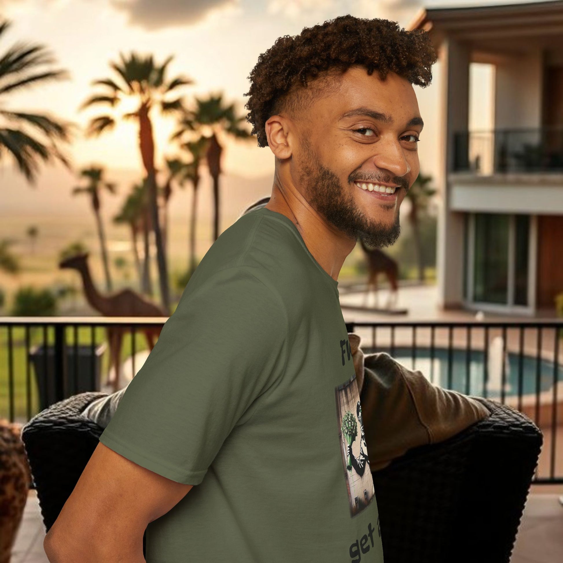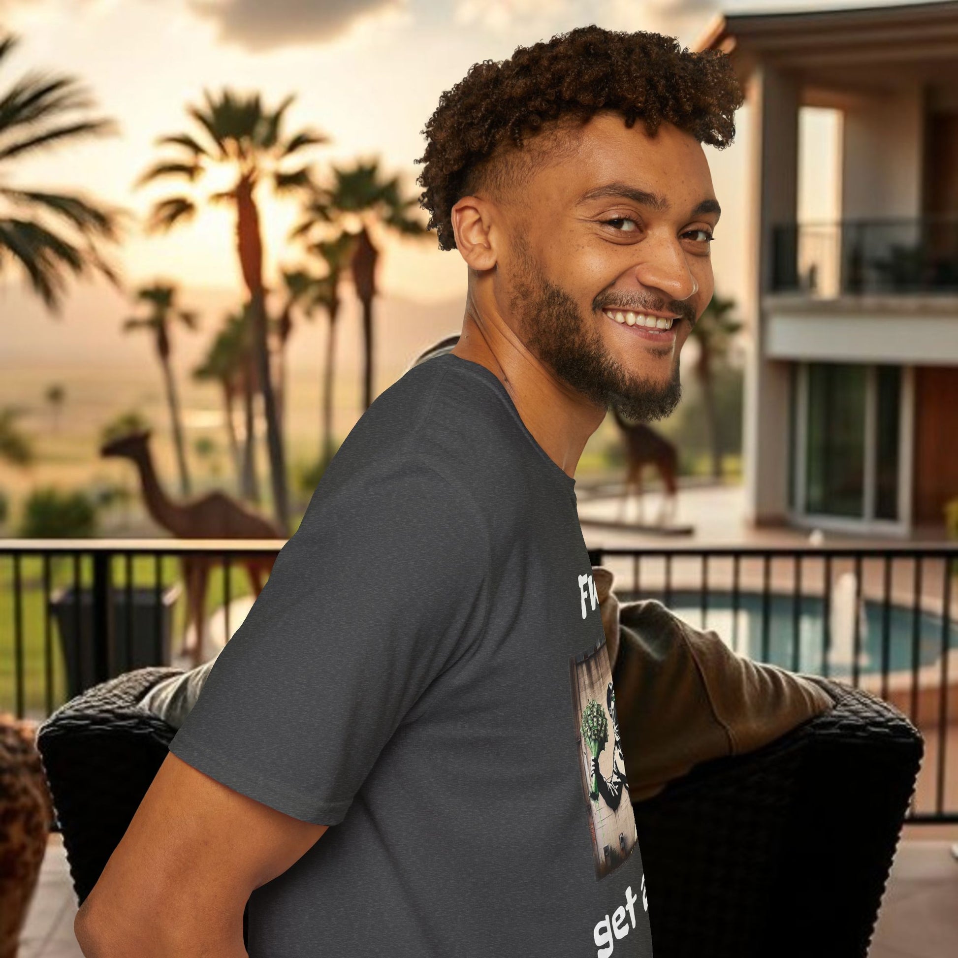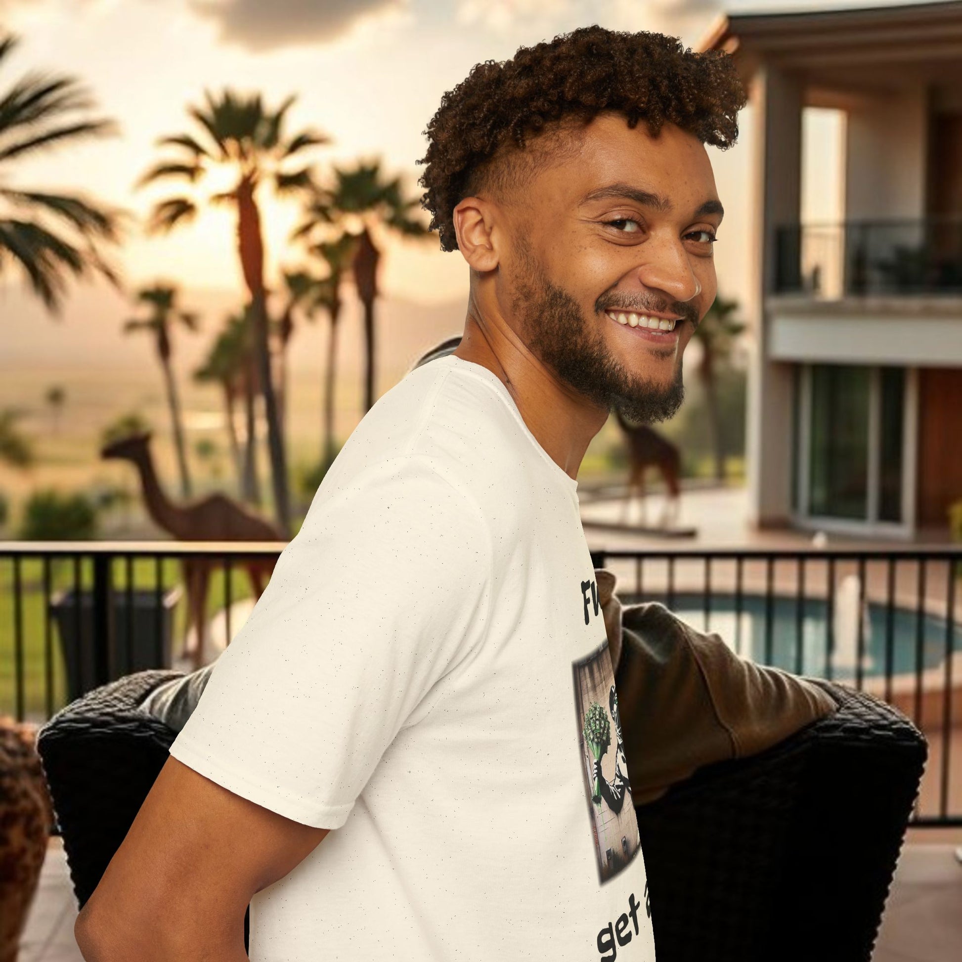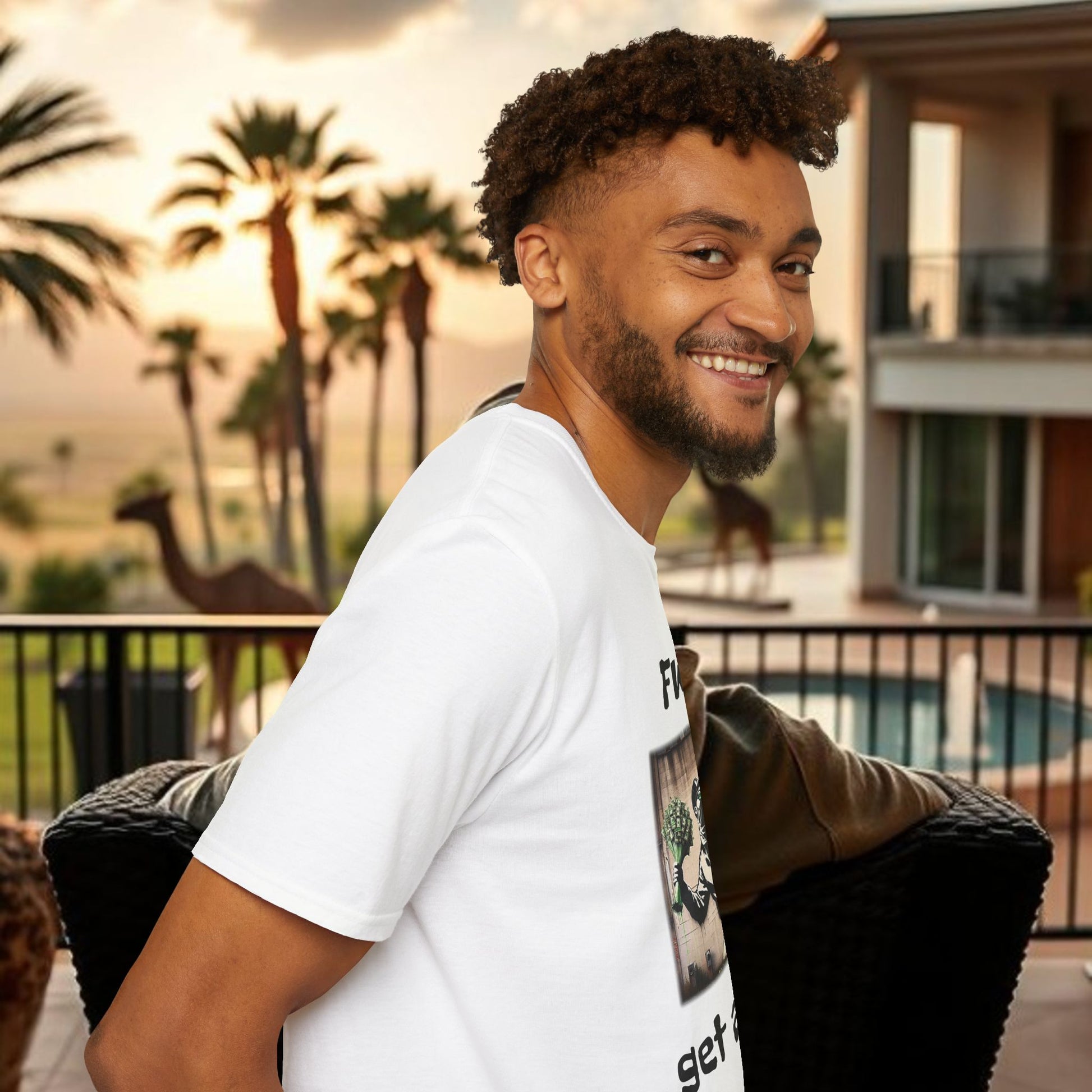 This lightweight tee speaks with blunt humor and streetwise style. A soft, breathable cotton body holds a bold print: a stencil-style figure mid-throw beside a stylized tree and the words “FWM” above and “get a bag” below. The design has an urban, DIY energy — part protest stencil, part late-night joke — that slides easily into a casual rotation. Wear it to signal dry wit and a love of graphic, conversation-starting tees; throw it on for coffee runs, rooftop hangs, or low-key meetups when you want something comfortable that still makes a statement. The crew neck and clean silhouette keep the look relaxed and wearable while the quality ring-spun cotton keeps the print crisp and the tee feeling soft after many washes.
