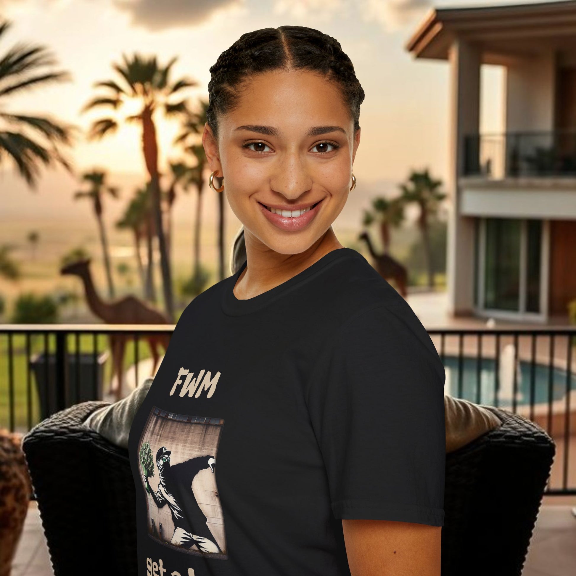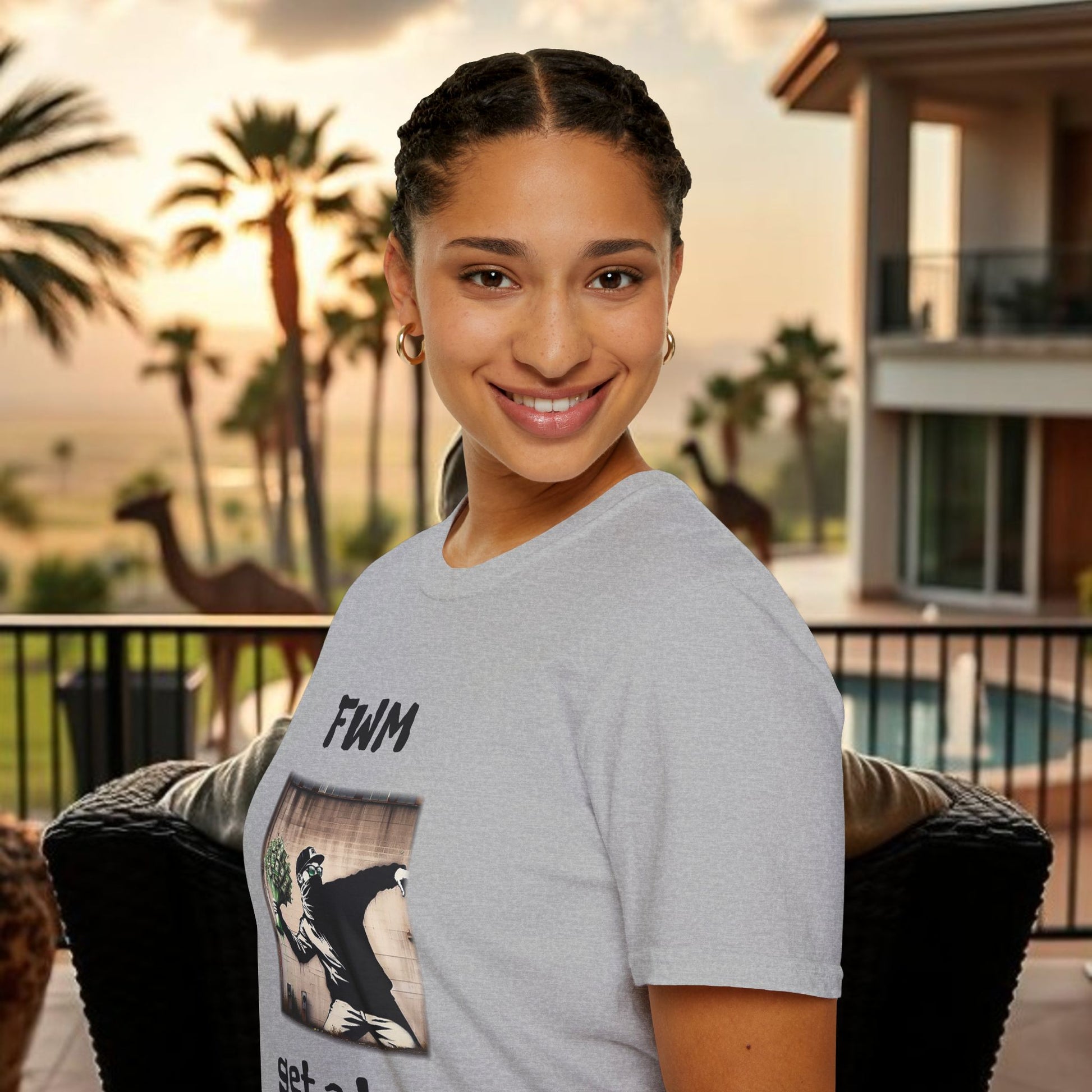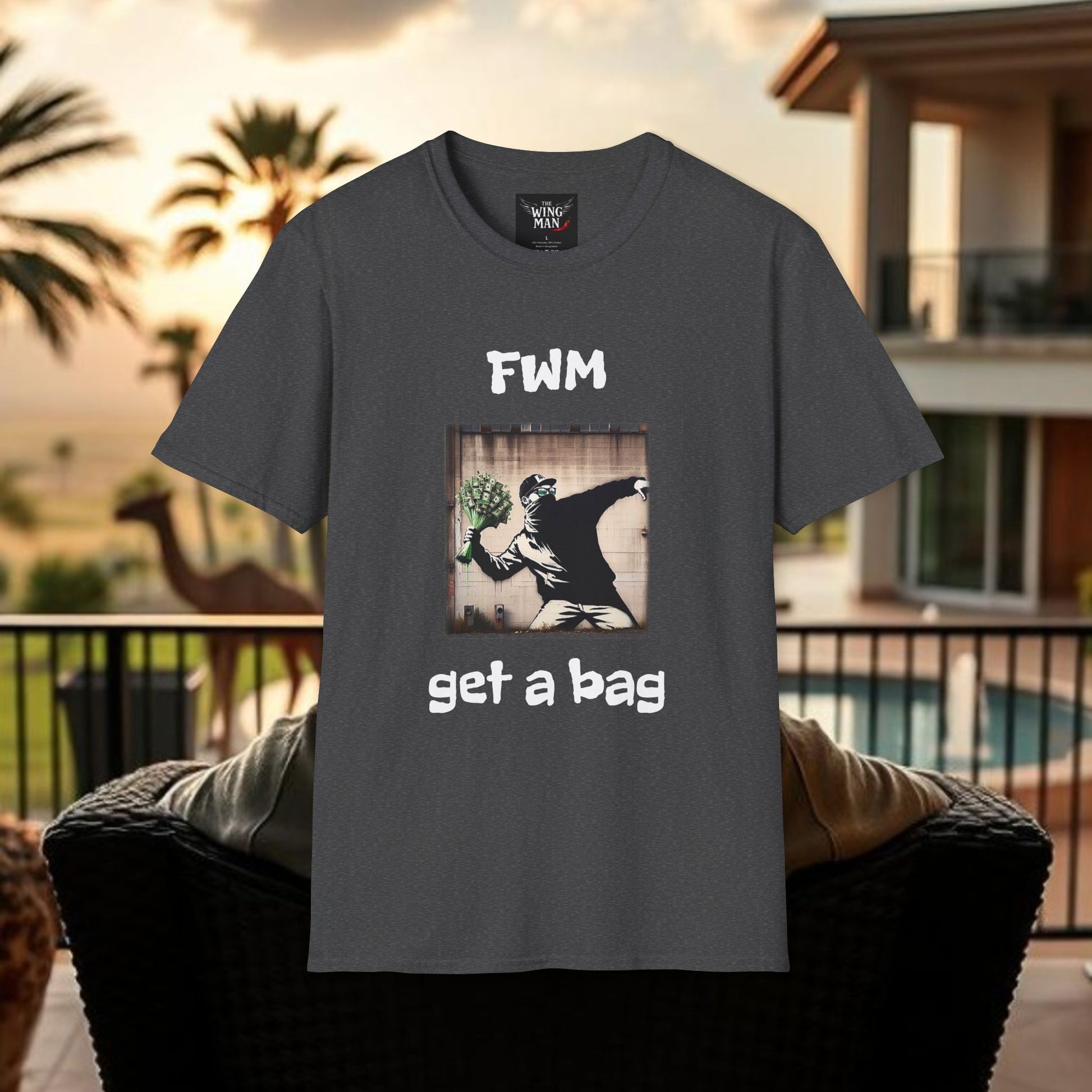 T-Shirt — "FWM Get a Bag" Graphic Tee (Banksy-Style Street Art)