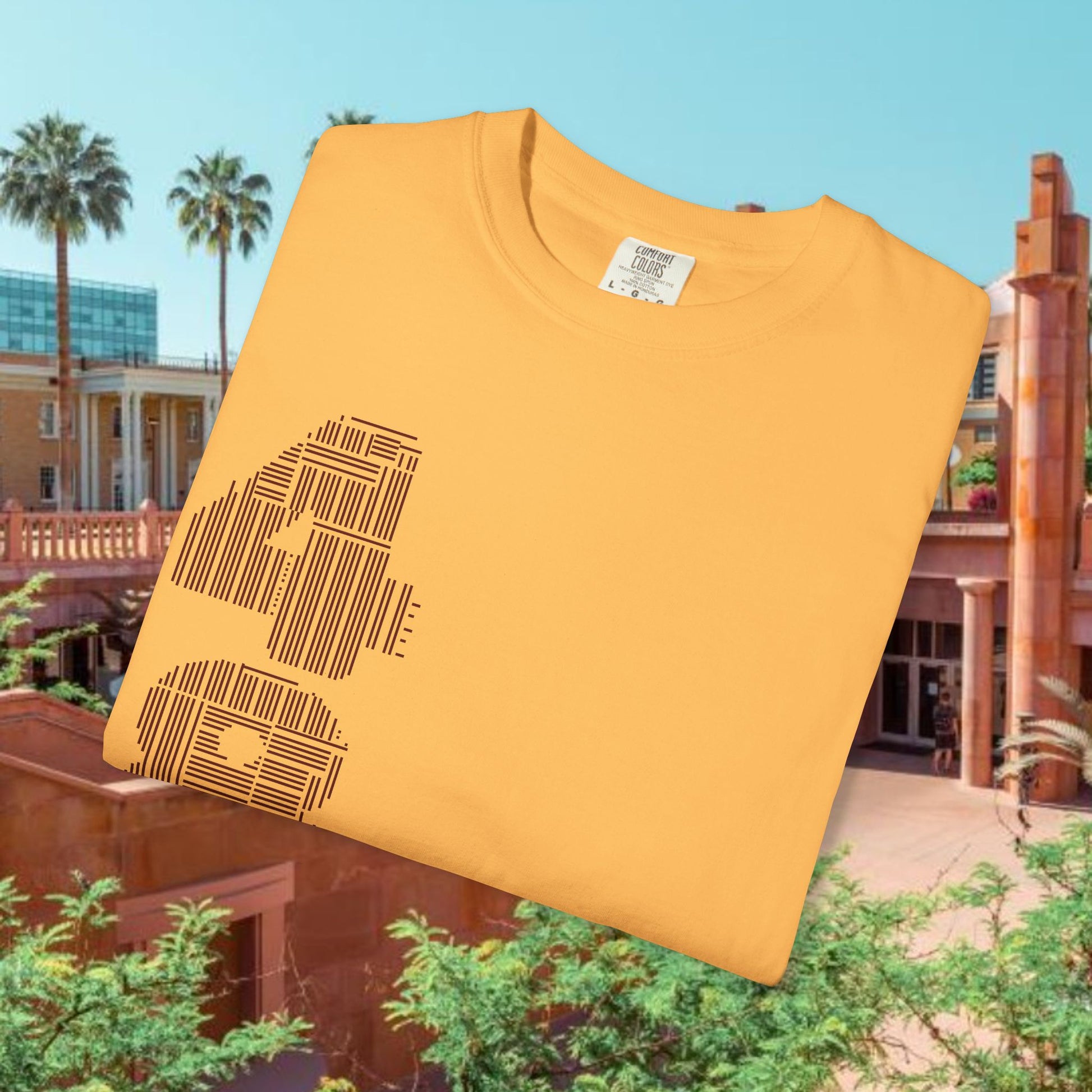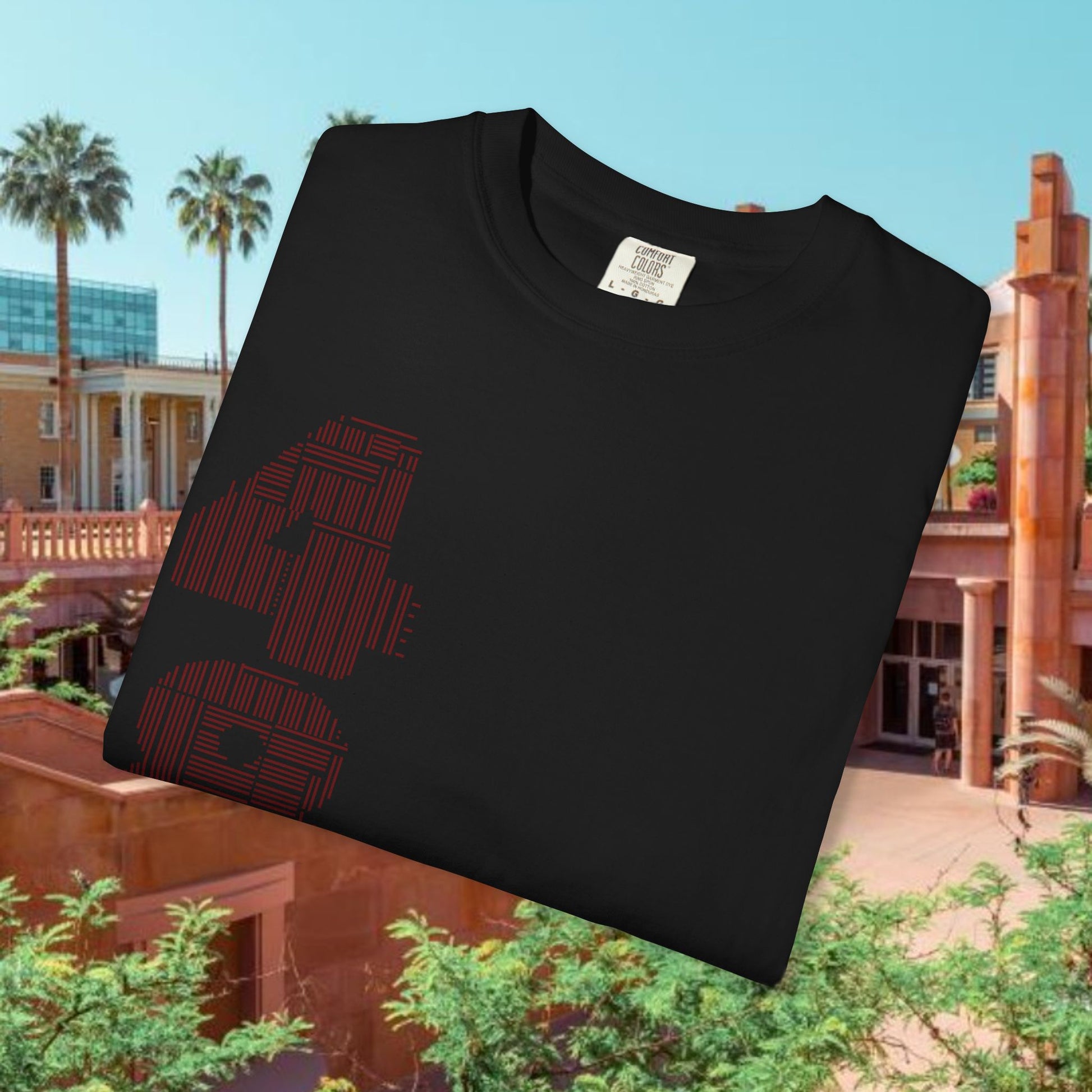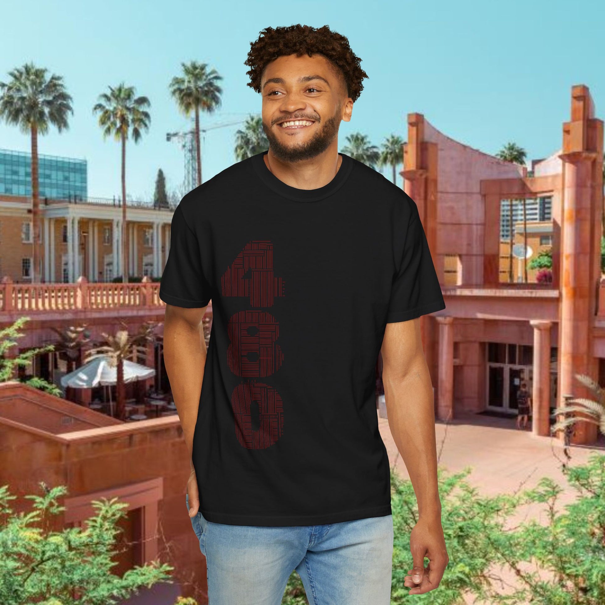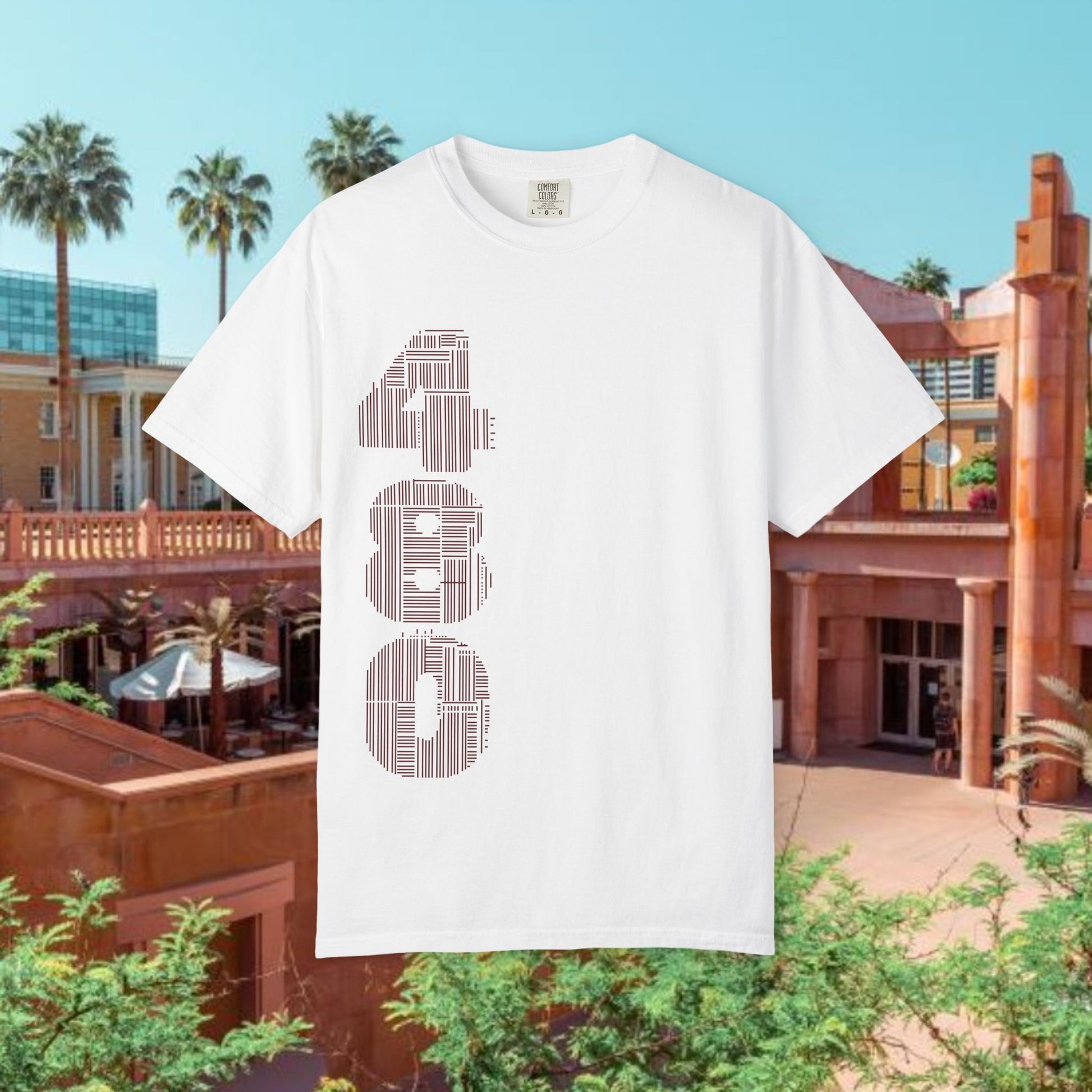 Soft, lived-in tee with a clean, minimalist front and a bold, emblematic back. The front shows a vertical ‘480’ rendered in clean, barcode-like lines — a quiet nod to local roots. On the back, a sharp trident and distressed “Tempe” wordmark sit just below the neckline, giving the shirt a subtle edge without shouting for attention. The garment-dyed cotton drapes easily and feels broken-in from the first wear. It becomes the go-to layer for wandering downtown, grabbing coffee, or heading to a low-key show. Lightweight but substantial, it settles into your rotation and grows more comfortable with every wash.