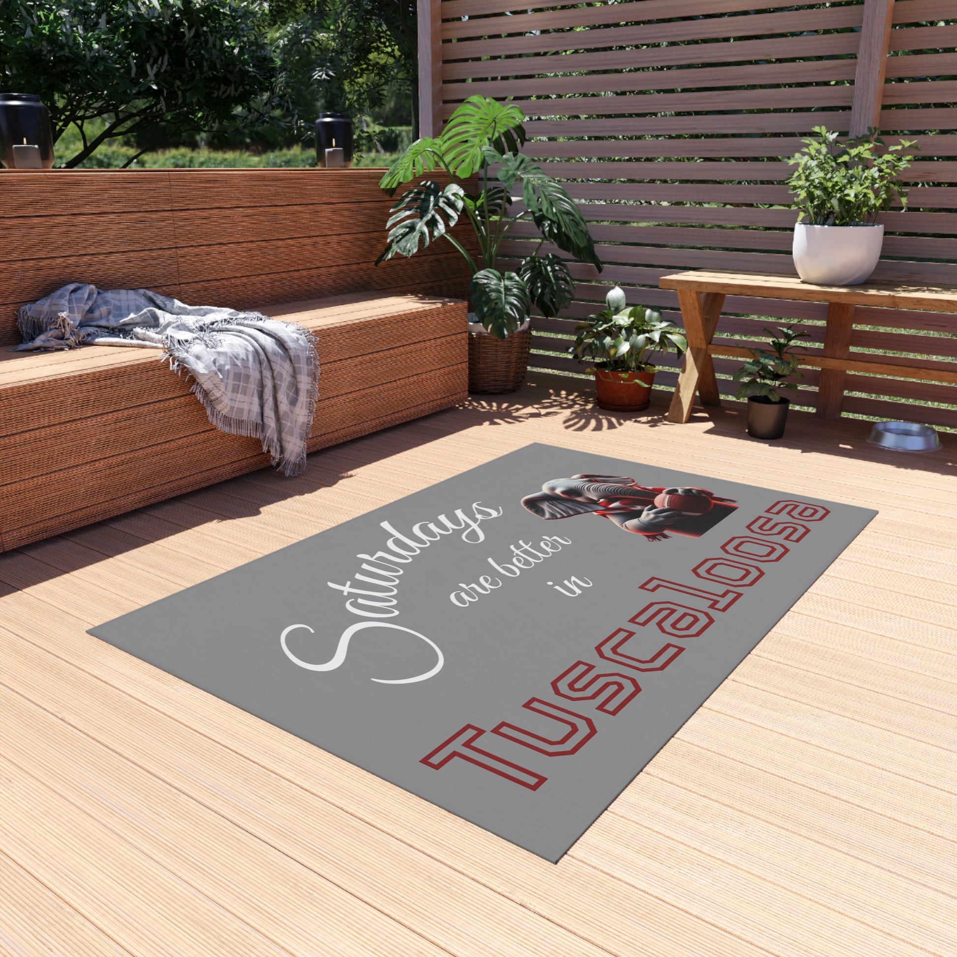 Tuscaloosa Saturdays Outdoor Rug — College Football Porch Mat with Elephant Design
