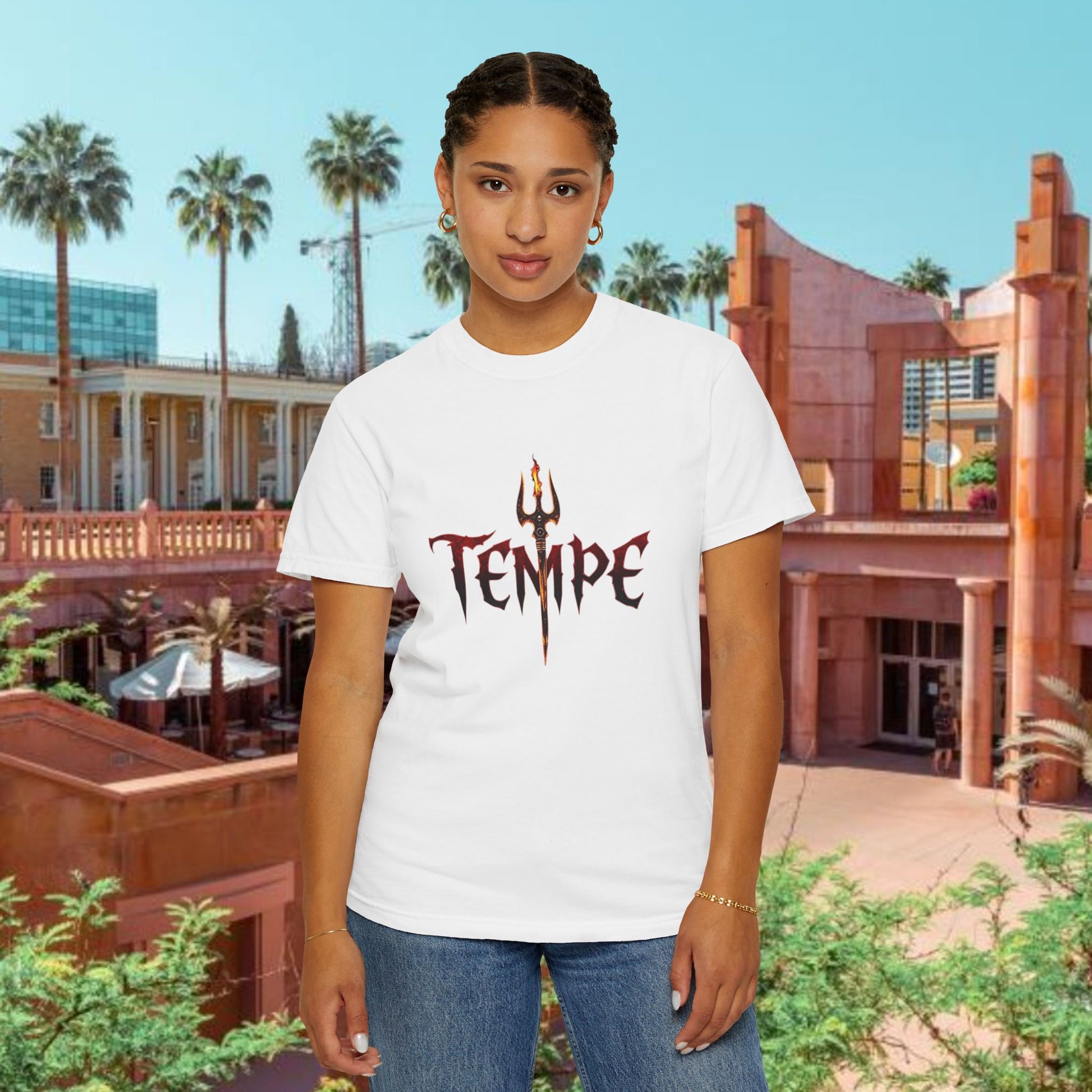 Unisex Garment-Dyed T-shirt with 'TEMPE' Design, Casual Summer Tee, Cool Streetwear Top, Perfect for Festivals